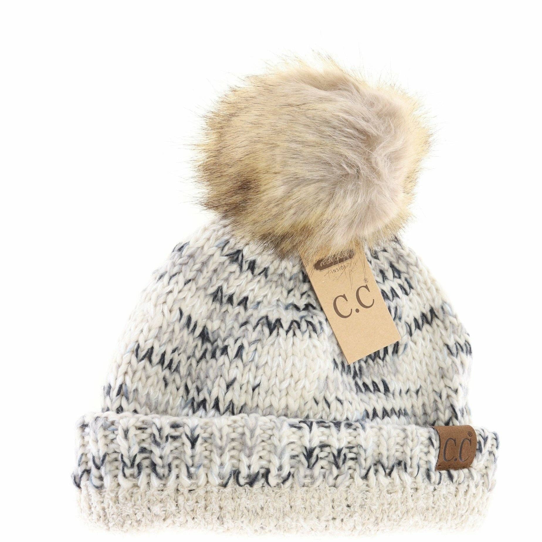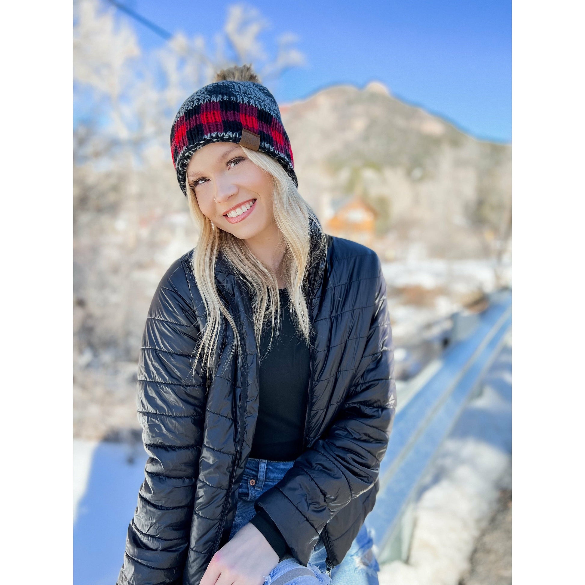 The mixed print has been a big hit in fashion - we are bringing it to you in this heathered knit and buffalo check mix print beanie!  We added everyone's favorite faux fur pom to make it even more special!