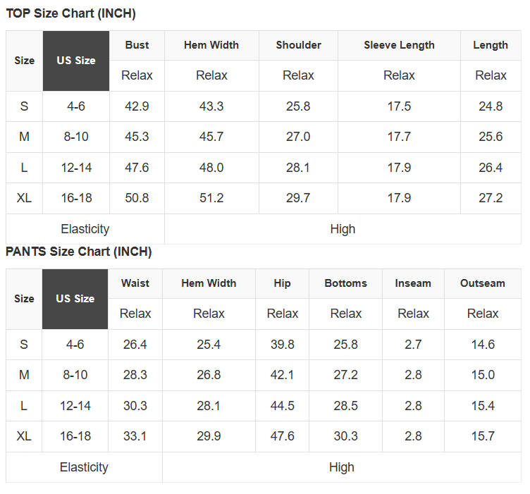See size chart for approximate measurements.