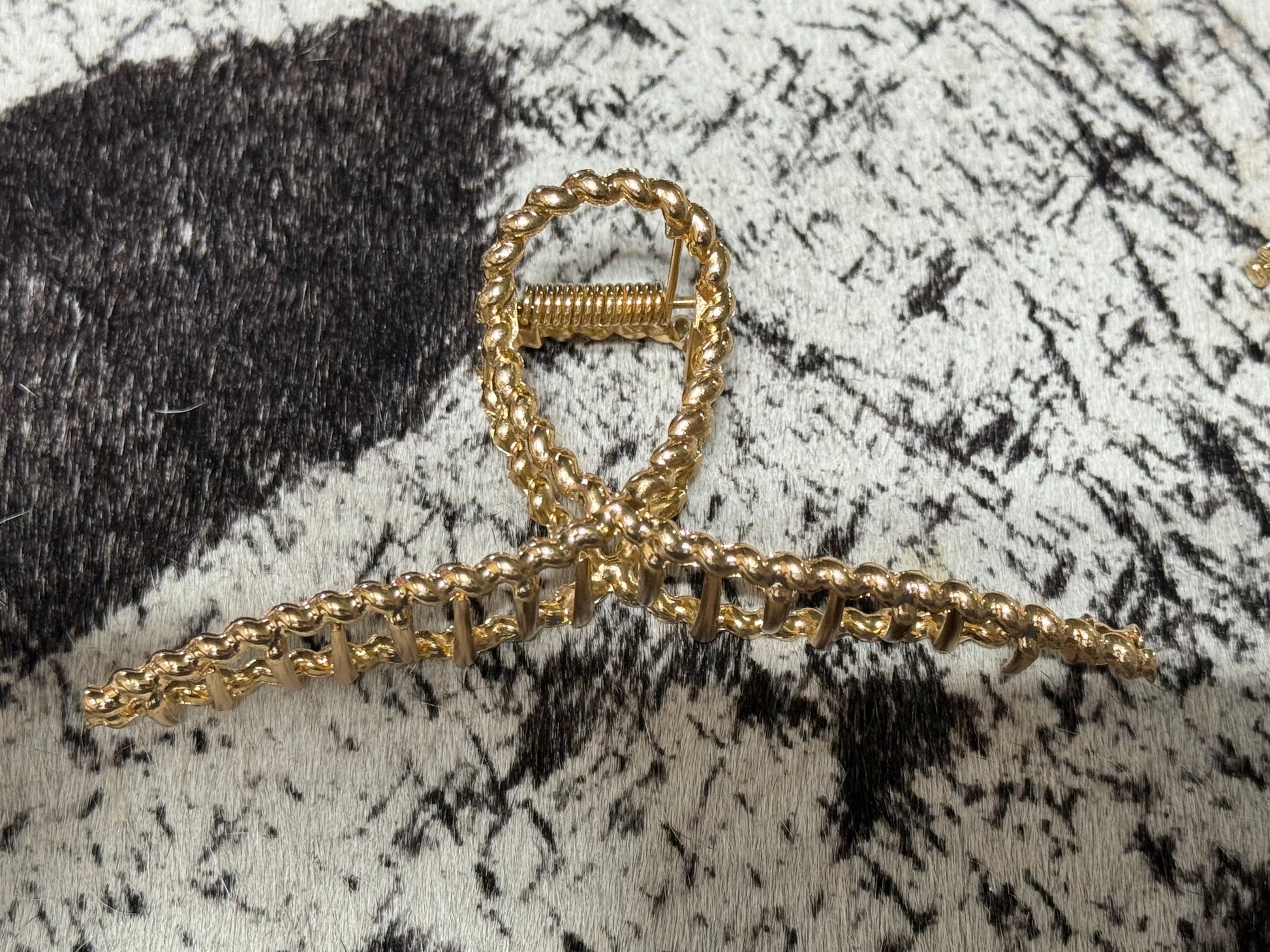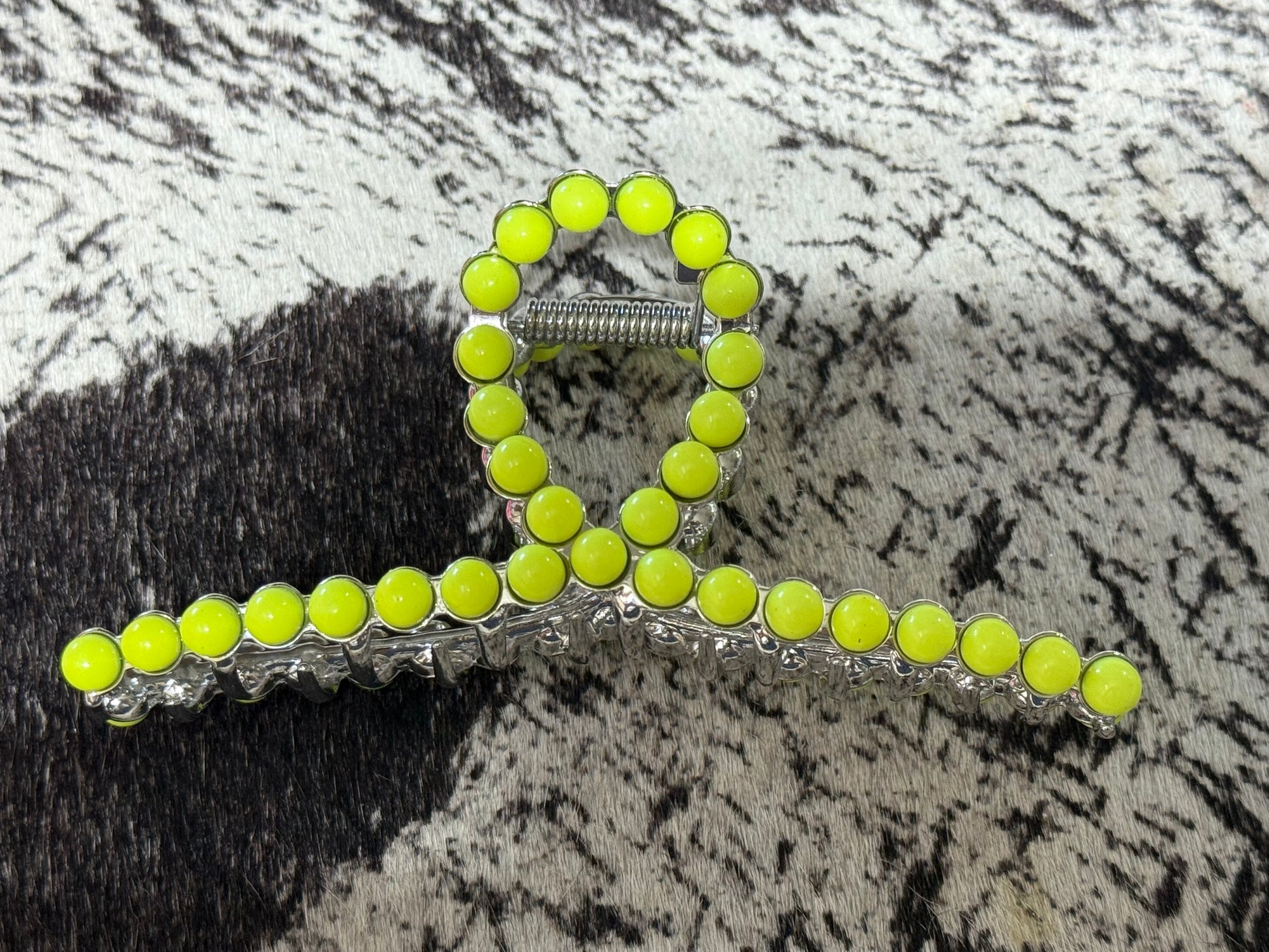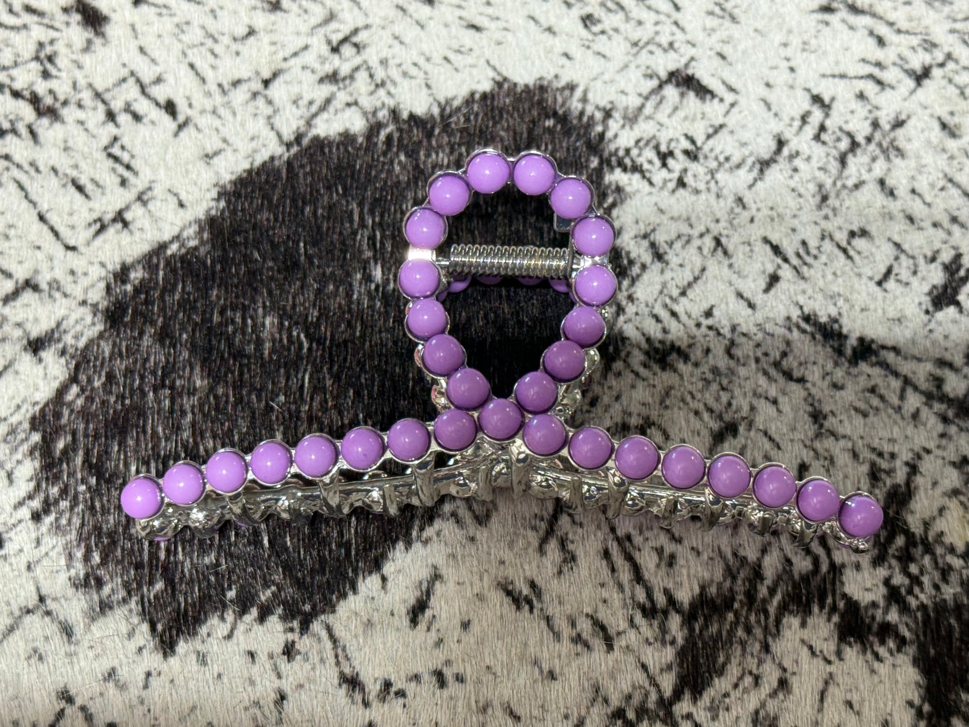 Get a grip on your hair with these Faux Navajo Pearl Claw Clips. These stylish hair clips not only hold your hair in place, but also add a touch of uniqueness to your look. Say goodbye to boring hair clips and hello to fun and functional with these Faux Navajo Pearl Claw Clips.
