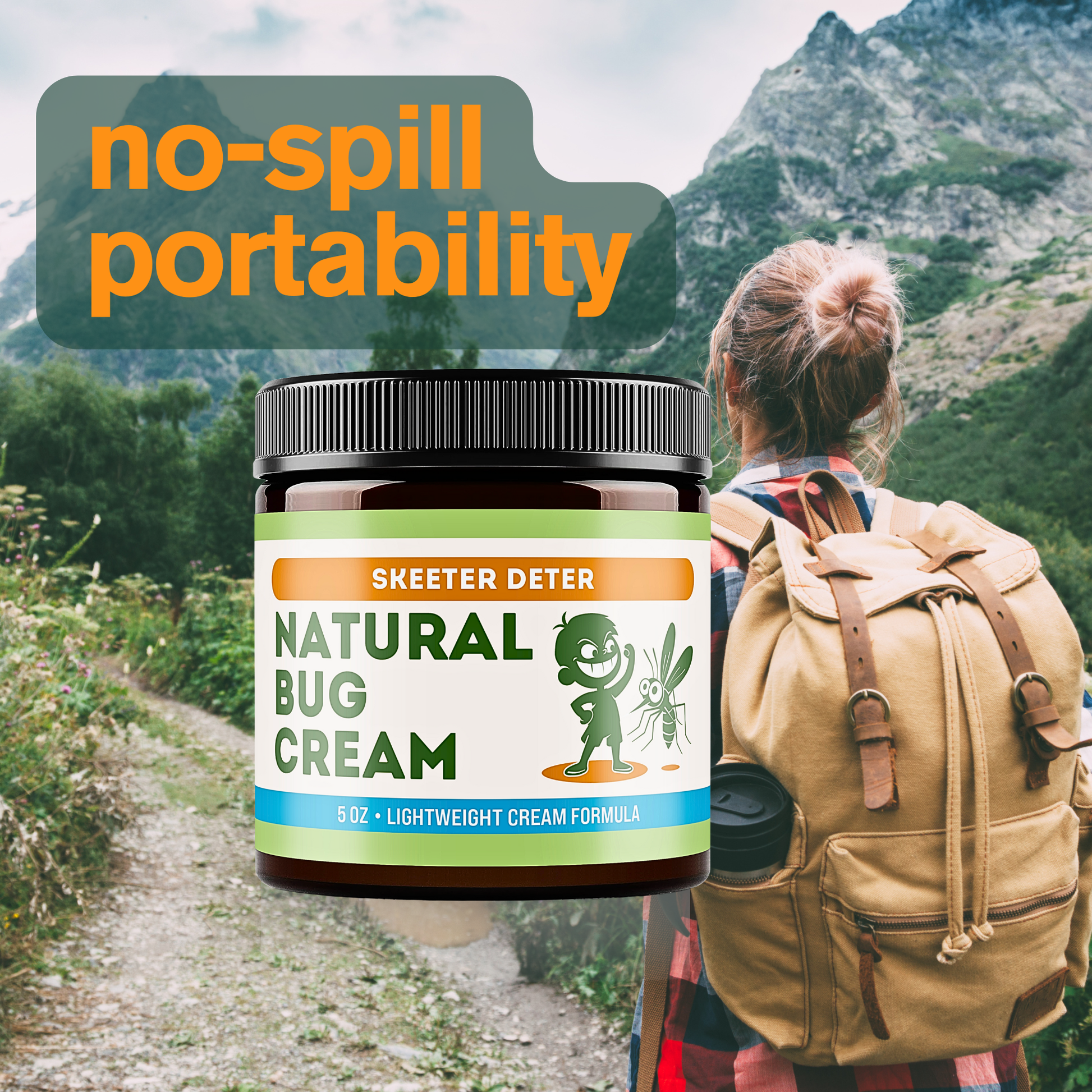 Natural Bug Cream - lightweight soothing formula. Gently massage onto arms, legs, feet.