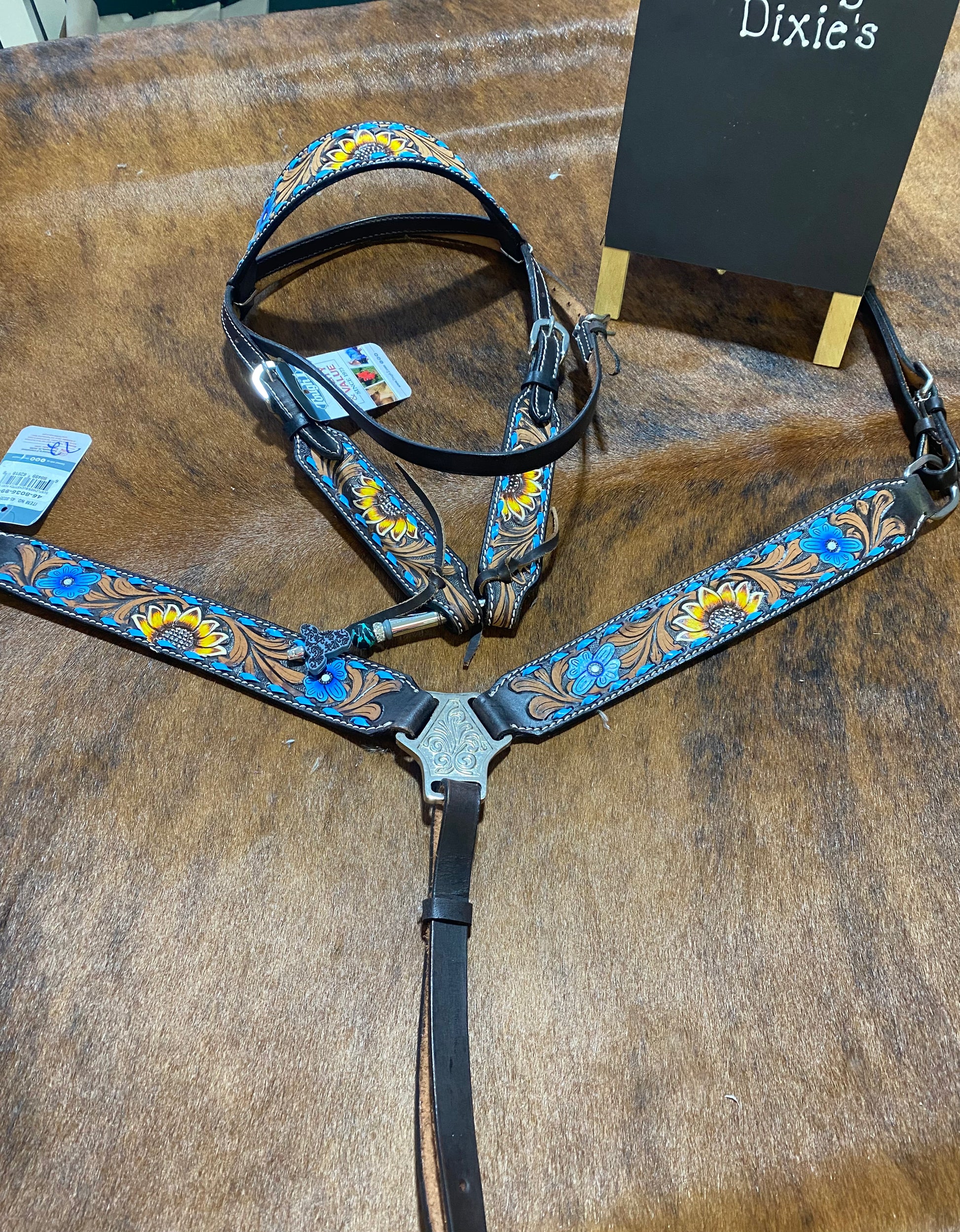 Tough 1 Pony Tack Set. Beautiful Blue with Sunflowers