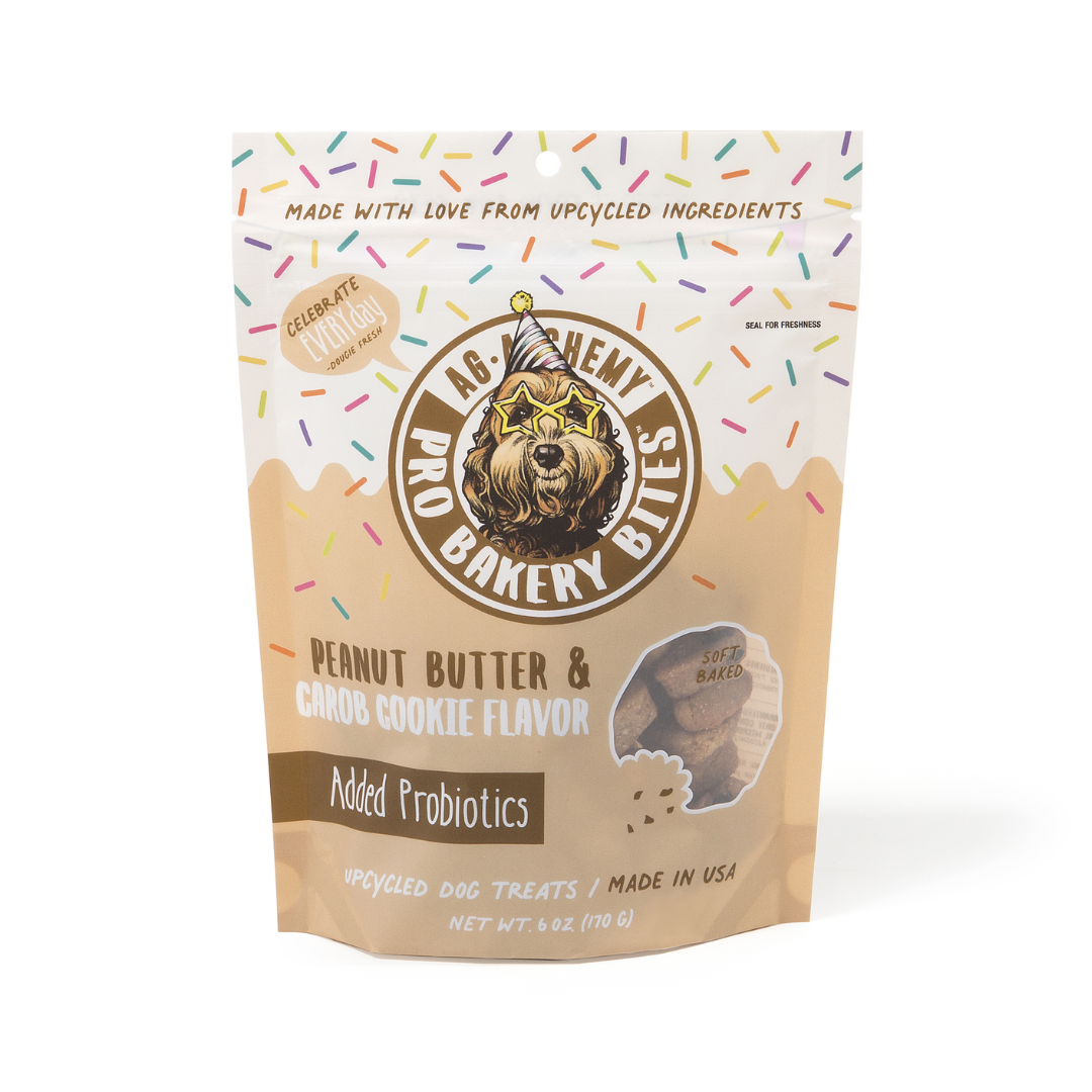 Ingredients: Dried Bakery Product, Wheat Flour, Vegetable Glycerin, Peanut Butter, Carob Chips, Canola Oil, Whole Egg, Lactic Acid, Mixed Tocopherols, Rosemary Extract, Chicken Fat (Preserved with Mixed Tocopherols), Lactobacillus salvarius Fermentation, Lactobacillus acidophilus Fermentation, Lactobacillus casei Fermentation, Enterococcus faecium Fermentation.