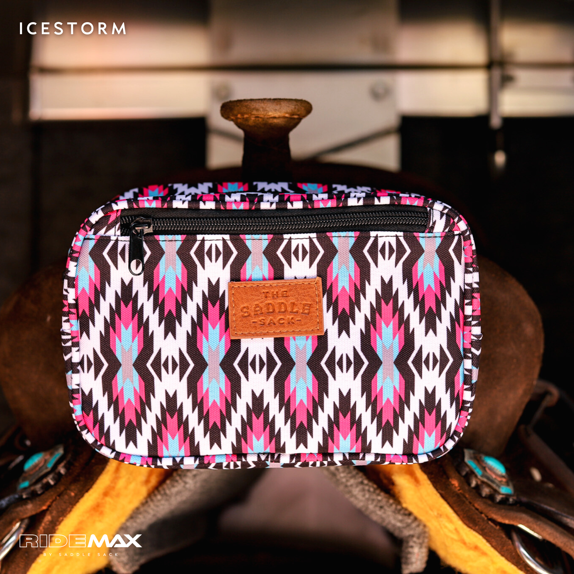 Don't have a place for your phone, keys, entry fees, etc while you ride? Tired of putting your phone in your pocket or inside your shirt? Now you don't have to! Clip your RideMax Saddle Sack to the pommel of your saddle and zip it up! You now can be hands-free with your belongings and focus on riding your horse. There is a separate compartment in the back to keep any small item (like your license) hidden from the public. You can fit everything you need in this thing! It can fit a full size water bottle with no problem! Product Size: 8.5" Wide X 5.5" Tall X 3" Deep