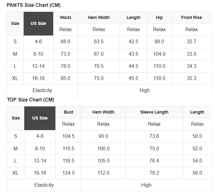 See size chart for approximate measurements.