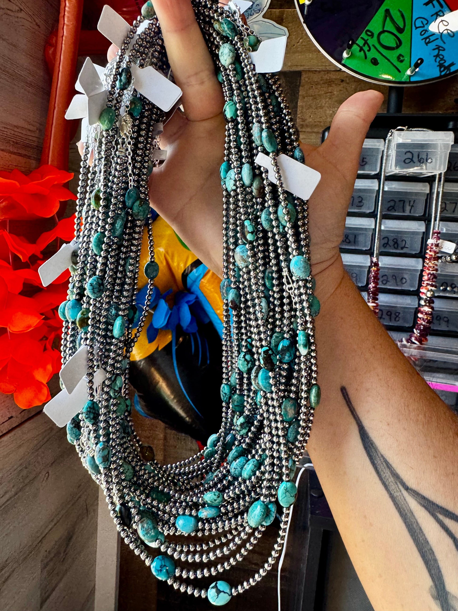 Each necklace is unique in color due to natural turquoise variation
