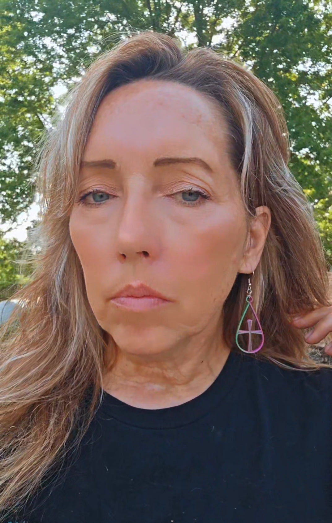 We print these on our 3d printer in pla filament - makes them incredibly light!  Please make sure you wear the backs for the earrings- they are so light you won't know you lost one!