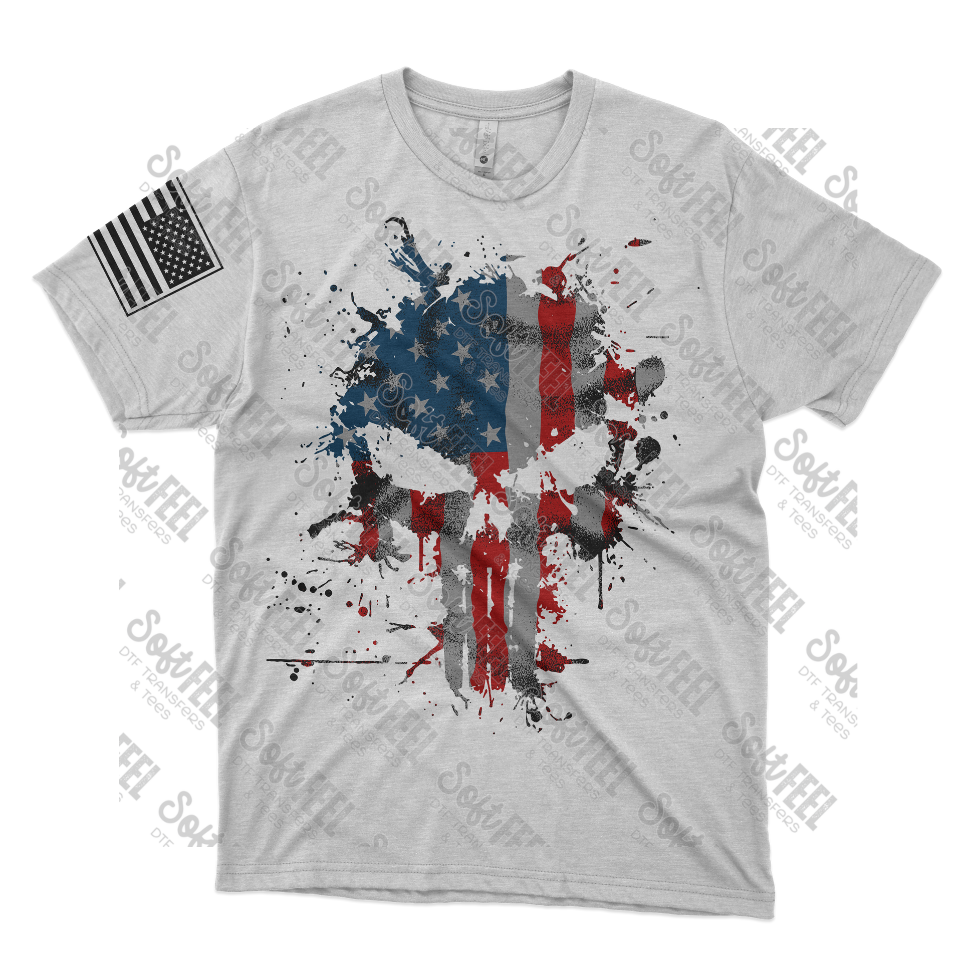 American Flag Skull - Men's / Military / Patriotic - Direct To Film Transfer / DTF - Heat Press Clothing Transfer