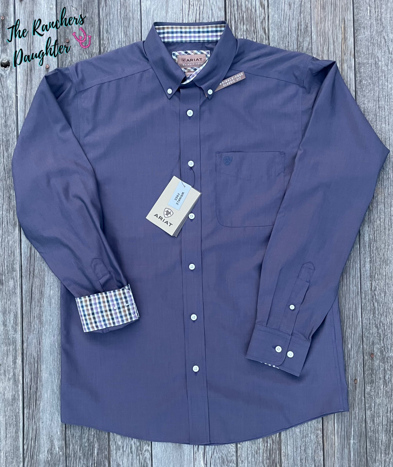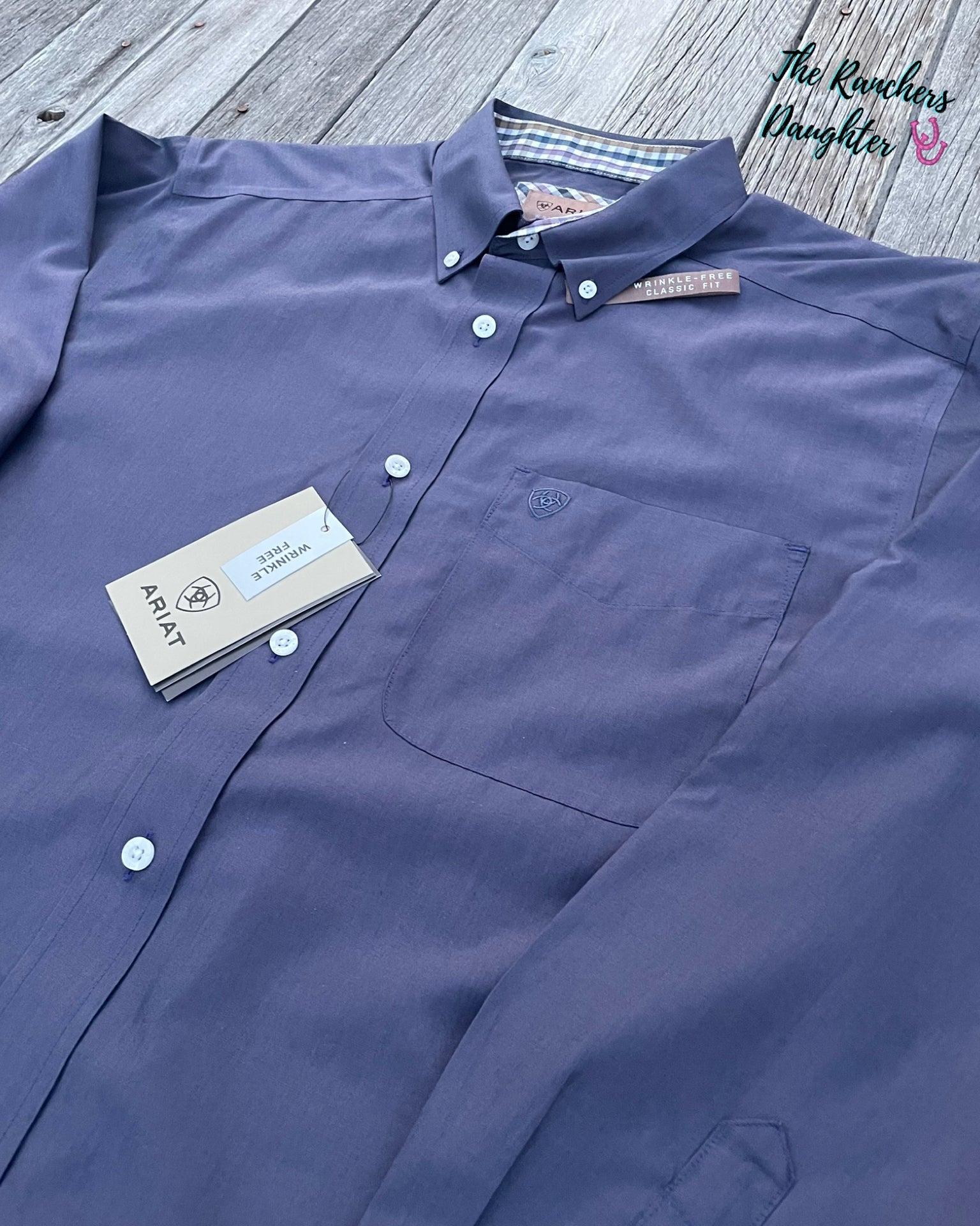 Ariat Men's Navy Wrinkle Free Solid Pinpoint Oxford Classic Fit Shirt