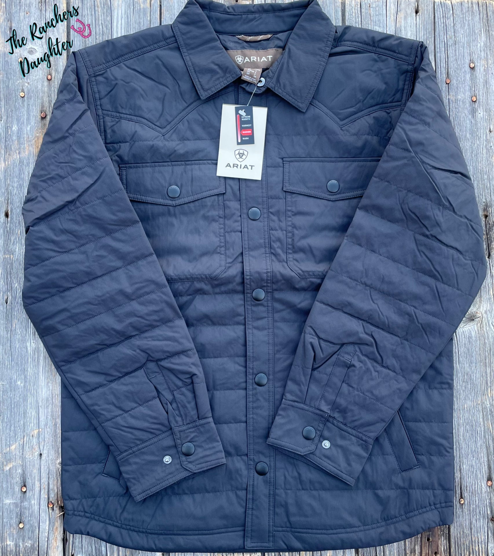 A great indoor-outdoor layer, this quilted shirt jacket blends style with durability. It's lightly insulated for warmth, with a durable exterior that protects against rips and tears. Subtle Western details add trademark Ariat style to the otherwise pared-back design.