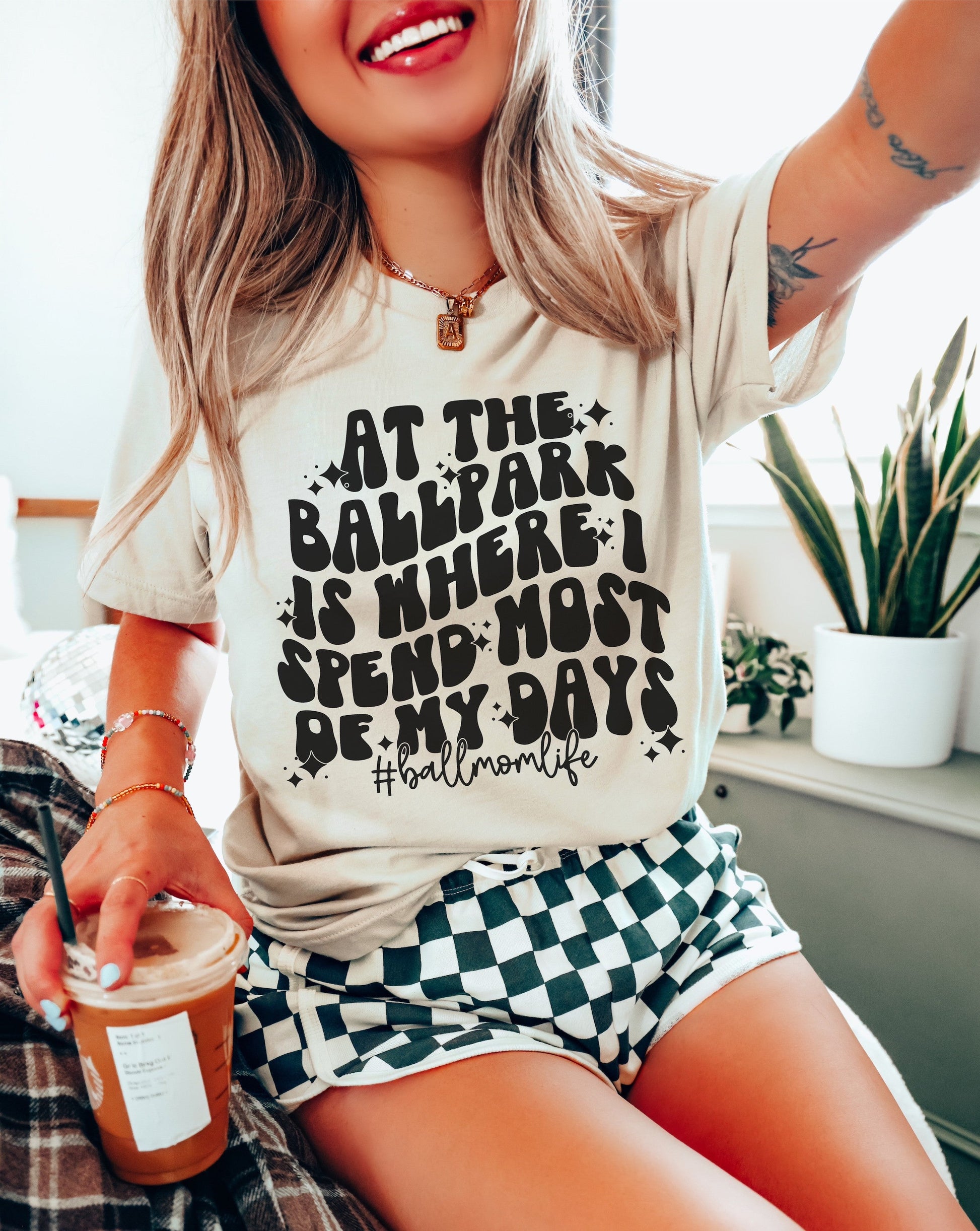 At The Ballpark is Where I Spend Most of My Days - Sports / Retro Wavy Font - Direct To Film Transfer / DTF - Heat Press Clothing Transfer