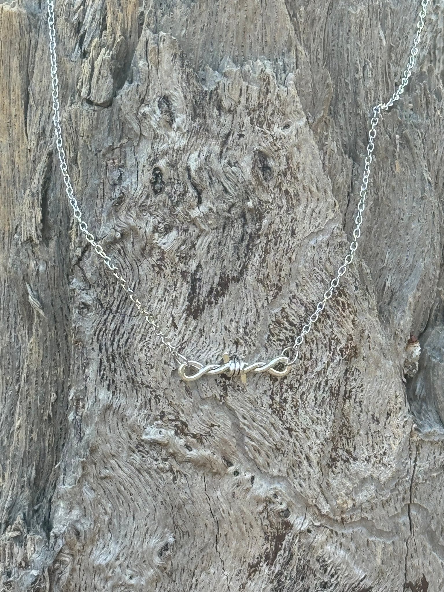 The Barbed Wire Charm Necklace is a striking accessory that embodies rugged elegance! Featuring a unique barbed wire charm, this necklace adds an edgy touch to any outfit. Perfect for those who appreciate bold, Western-inspired style, it’s a statement piece that beautifully balances toughness and sophistication!
