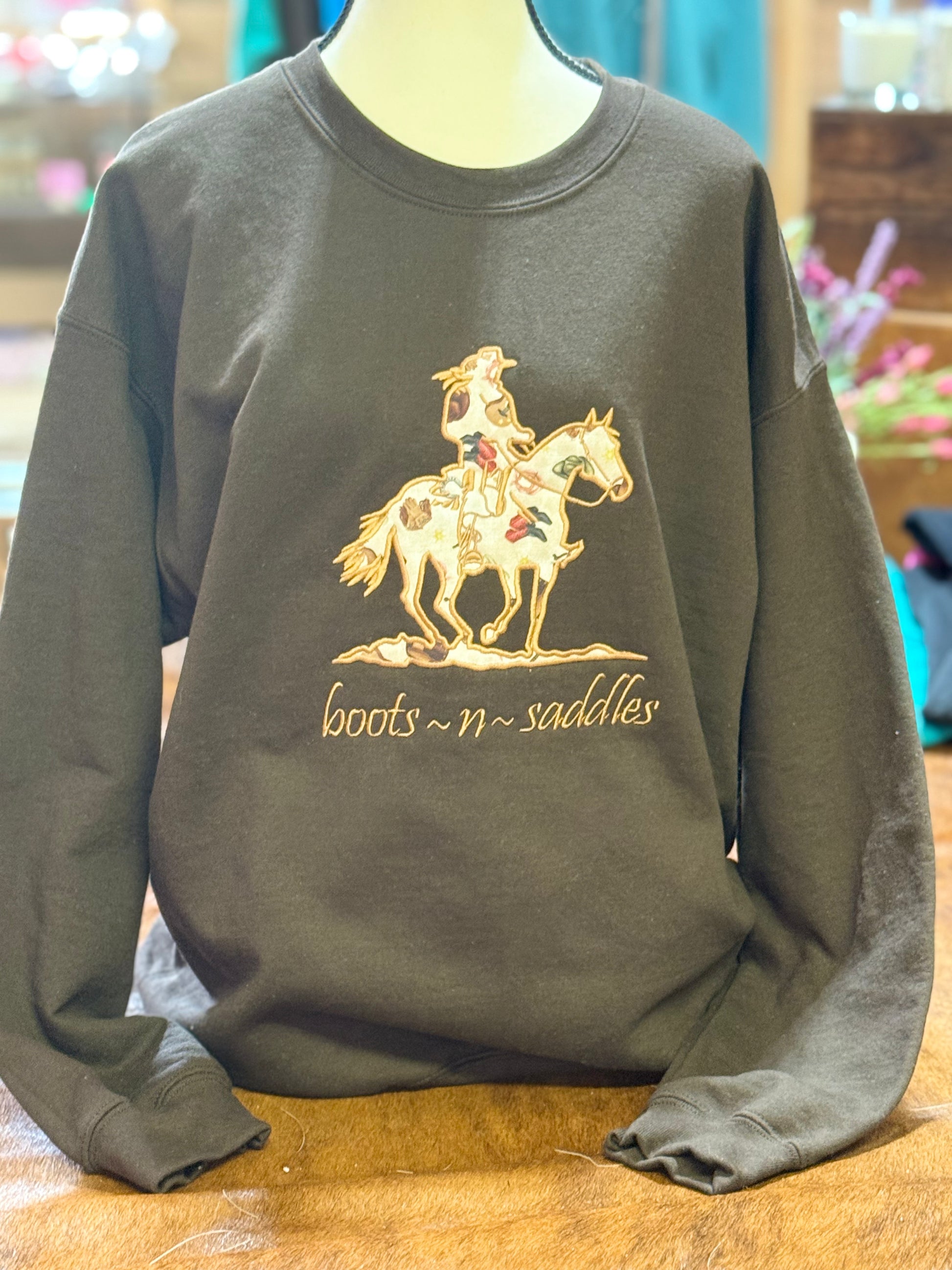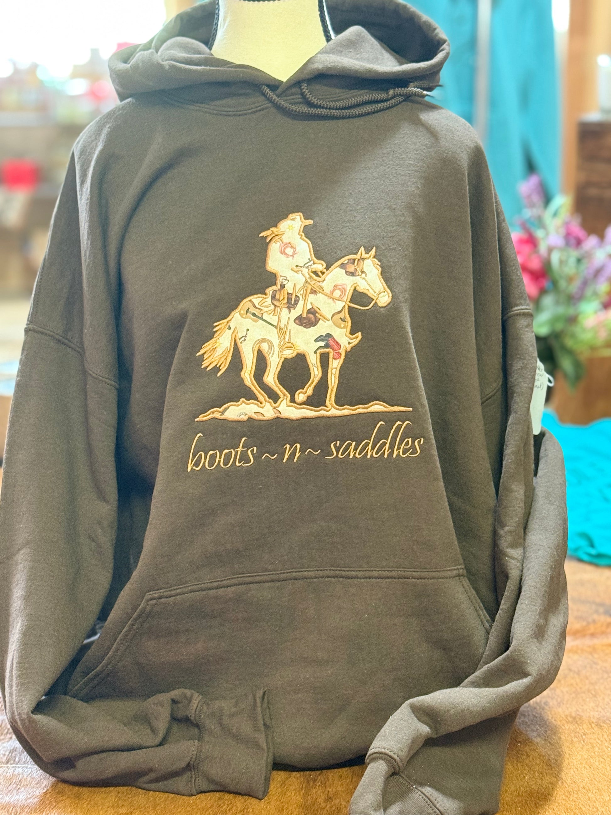Barn Star Swag Embrodiered Boots n Saddles Hoodie ad Crew neck