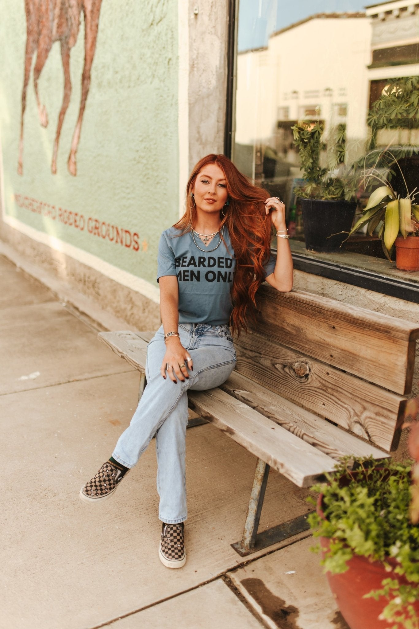 The Bearded Men Only Graphic Tee says what everyone's thinking—no beard, no entry. With bold lettering and a cheeky western attitude, this tee brings major personality and a whole lot of scruff-loving sass. Wear it loud, wear it proud—facial hair required.