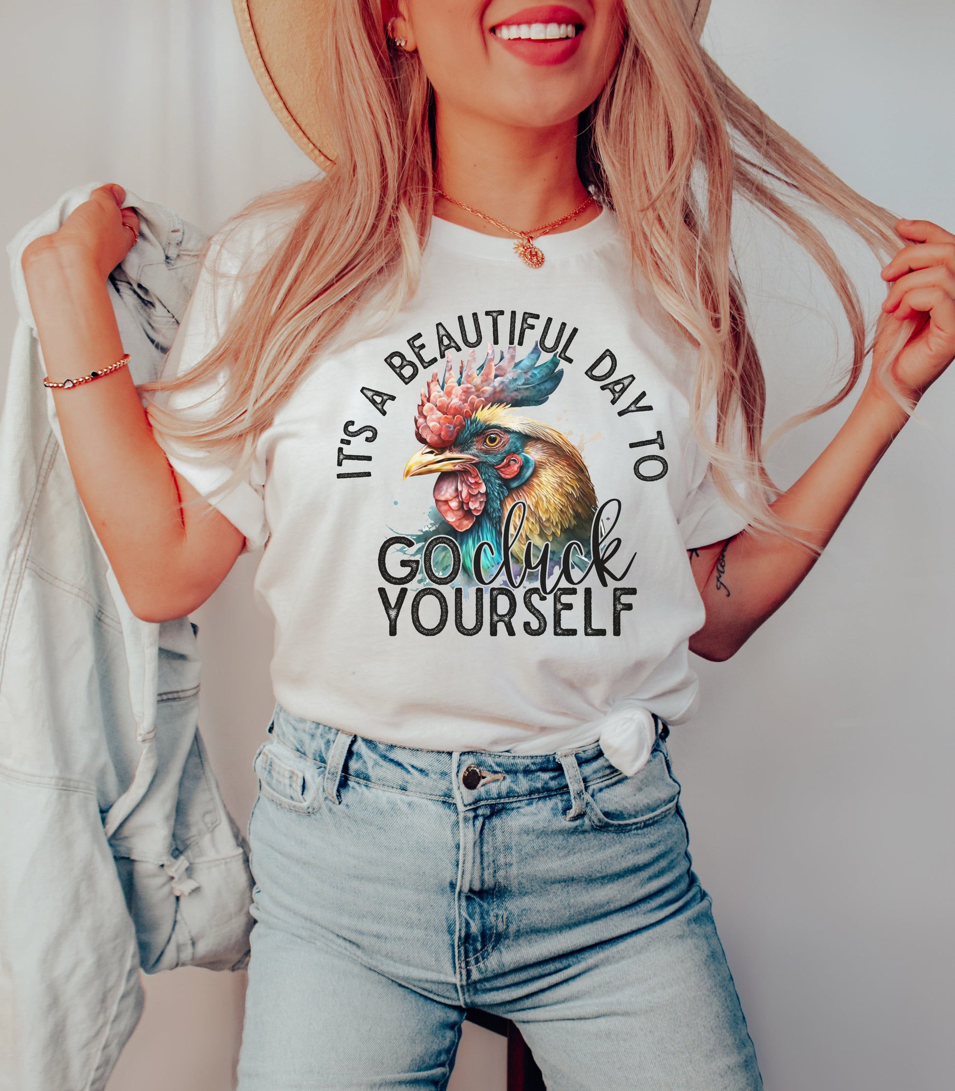 Beautiful Day To Go Cluck Yourself Rooster - Humor / Western - Direct To Film Transfer / DTF - Heat Press Clothing Transfer