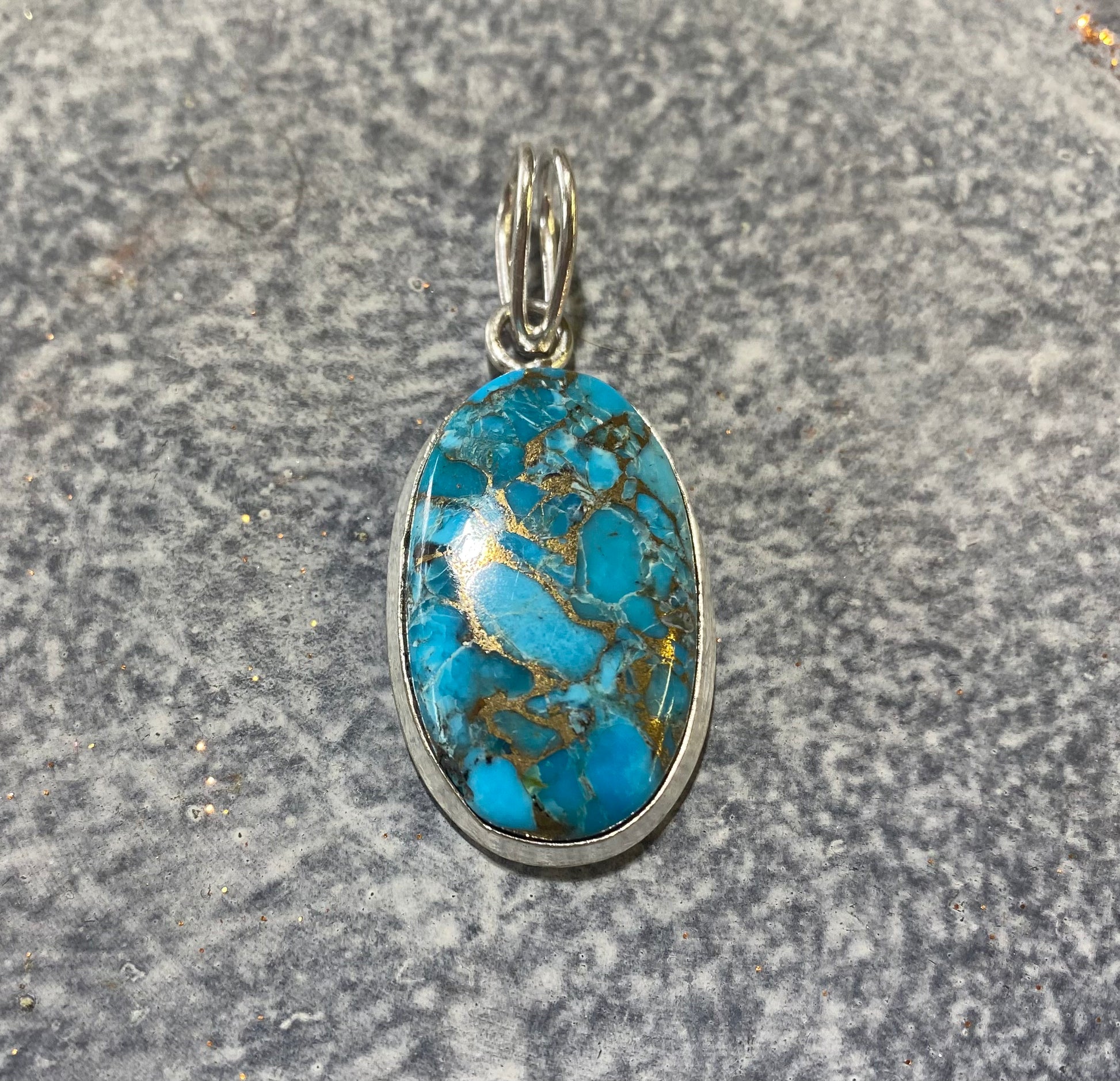 Unleash your daring side with this stunning Blue Copper Turquoise 925 silver Pendant! Exude confidence and adventure with this bold and unique piece that will make you stand out in any crowd. Take a step towards boldness and add this pendant to your collection today!