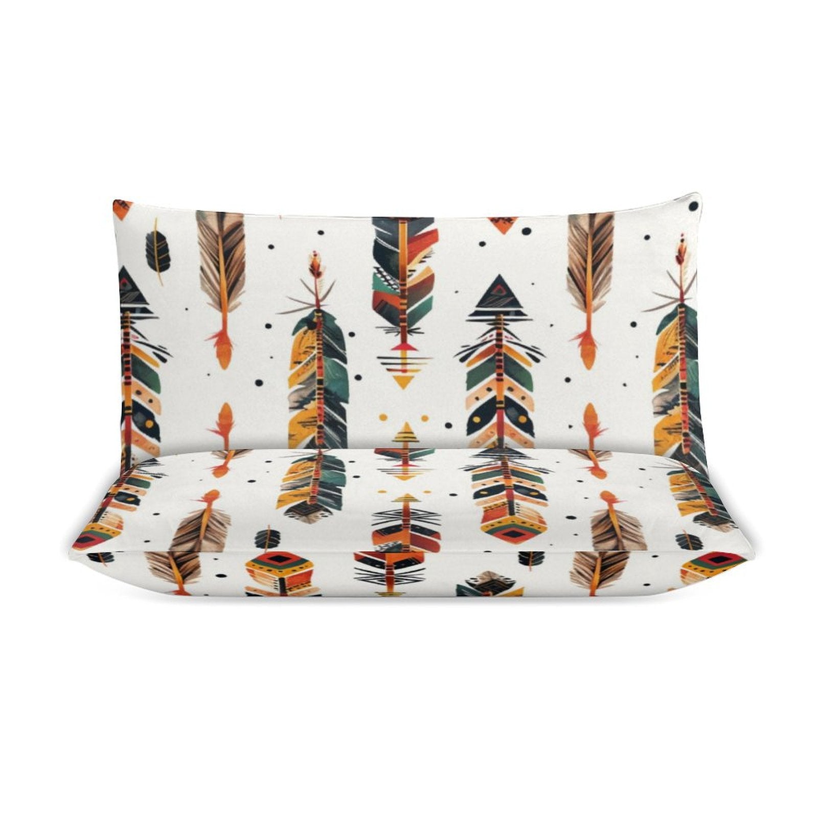 Boho Feather Print 3-Piece Bedding Set (1 Duvet Cover + 2 Pillow Shams) – 102"×90"