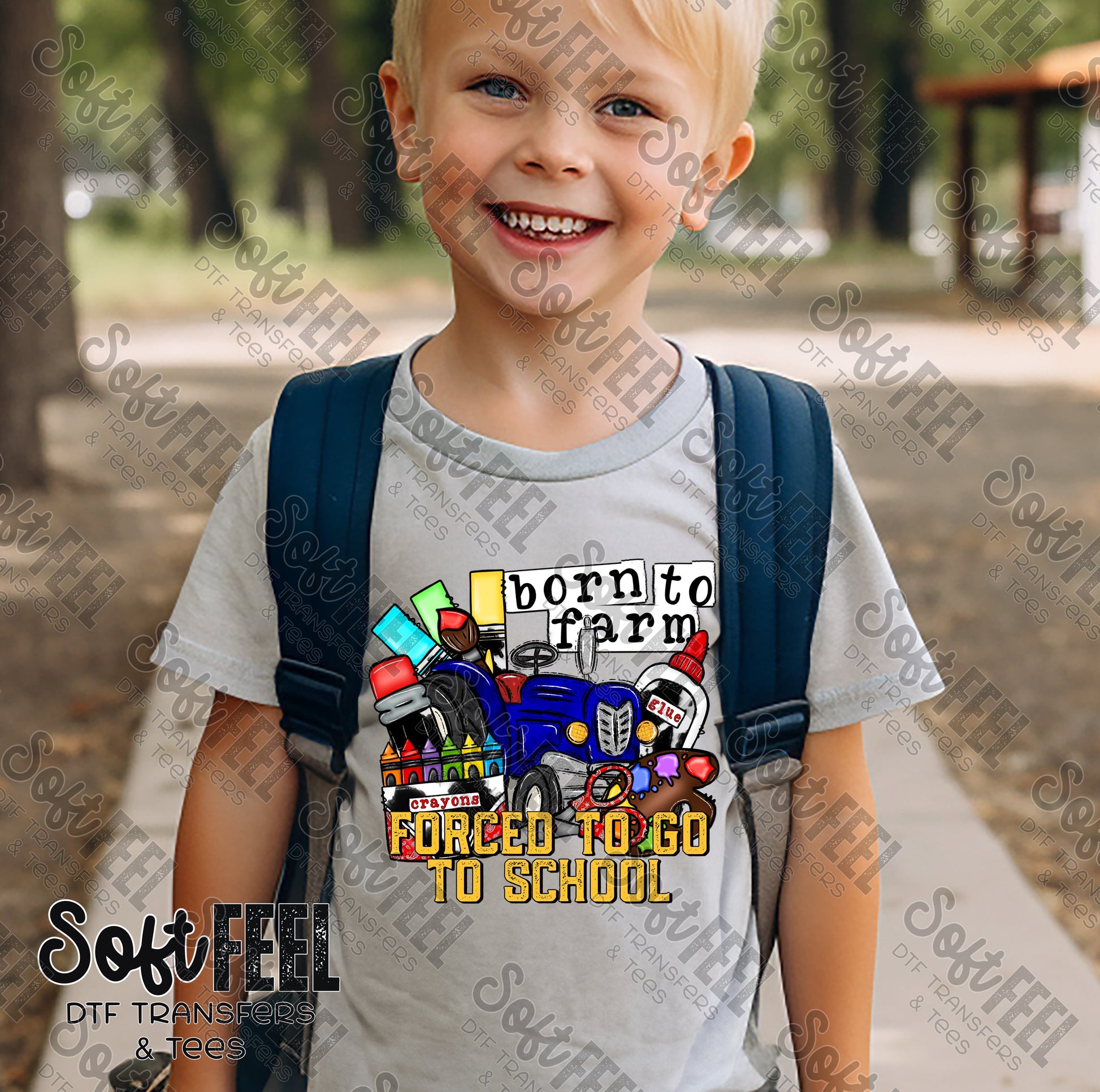 Born to Farm Forced to Go To School - Back to School - Youth / School and Teacher- Direct To Film Transfer / DTF - Heat Press Clothing Transfer