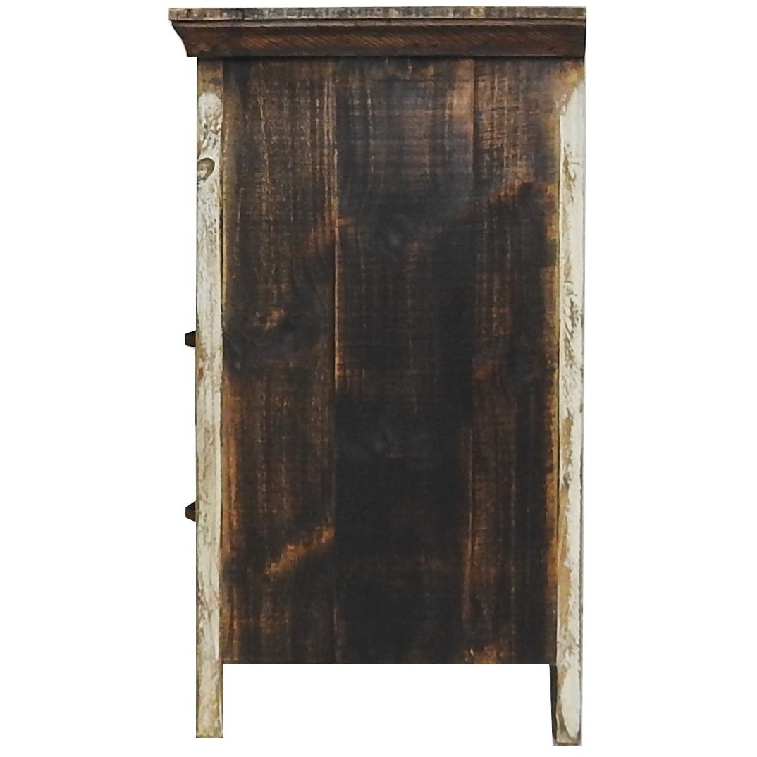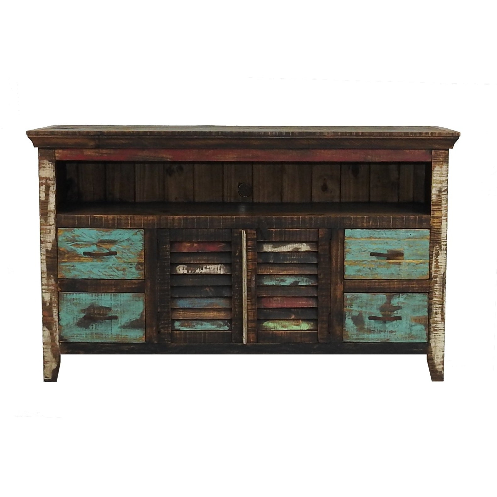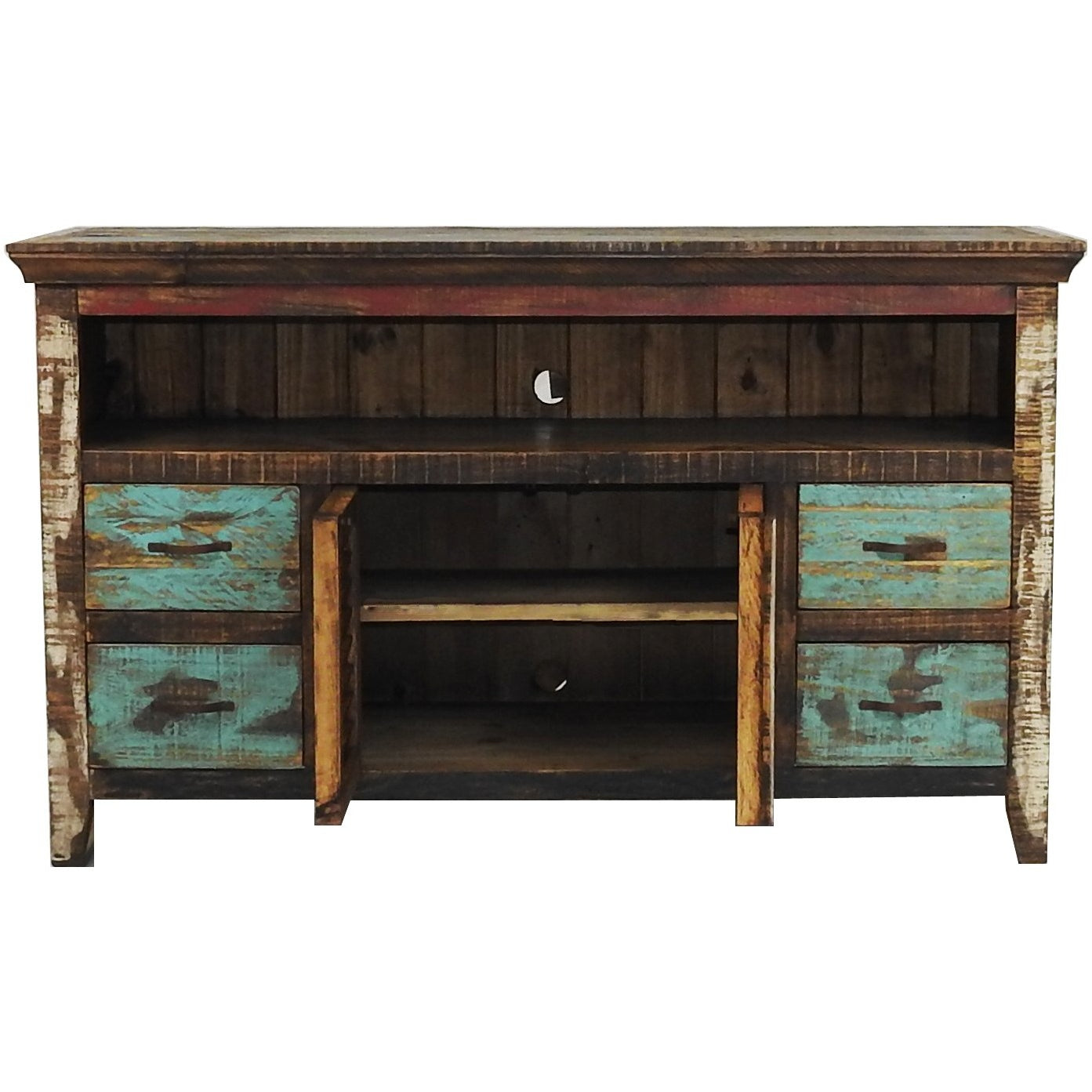 Upgrade your entertainment area with the Cabana 60” TV Stand, expertly crafted from solid pine wood. This TV stand features a captivating multicolored finish enhanced by dark brown wax, adding rustic charm and handcrafted allure to your space. Ideal for farmhouse or cabin décor styles, it effortlessly blends functionality with aesthetic appeal.