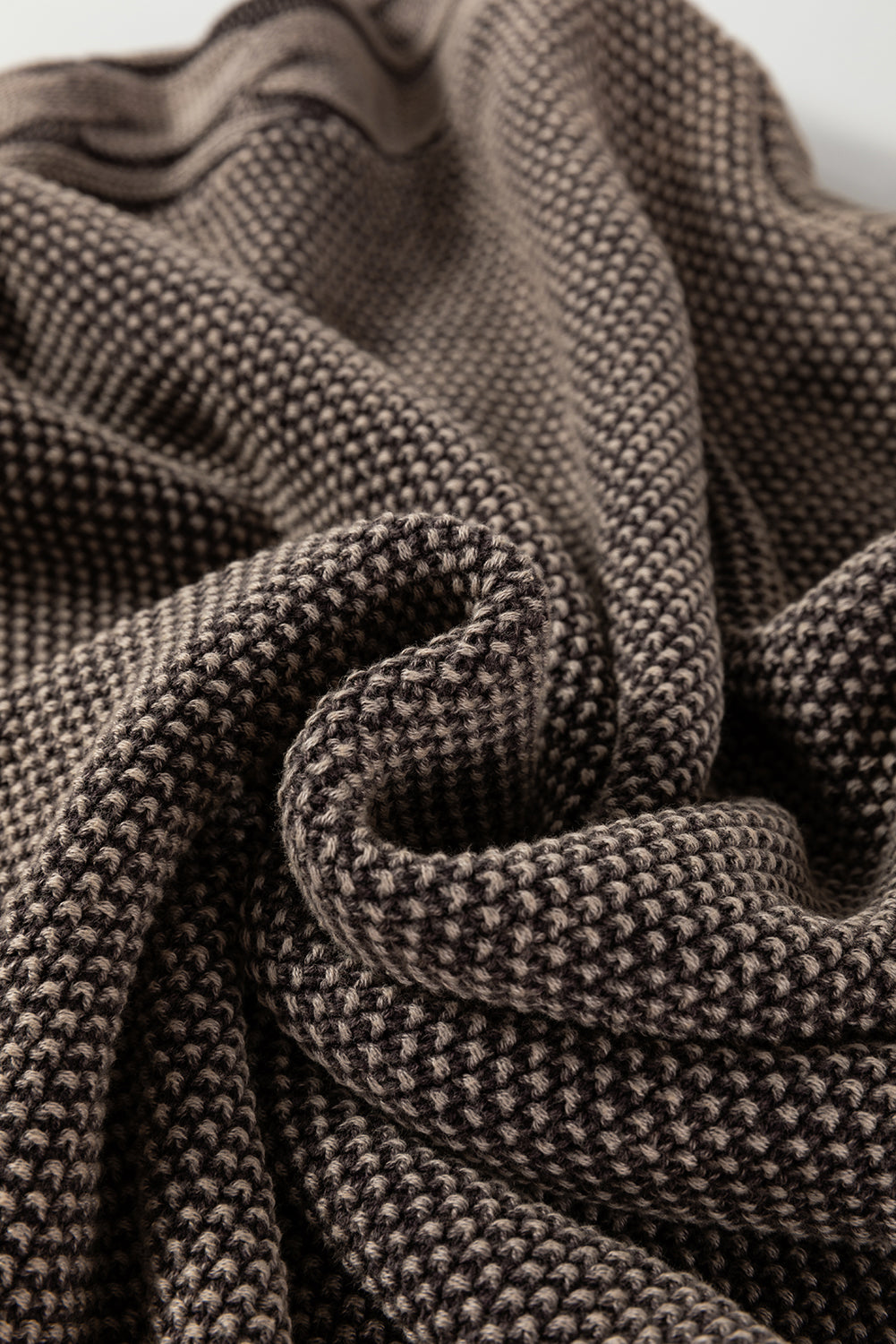 This casual sweater combines fine-textured craftsmanship with a distinctive contrast knit design on the sleeves. Its elastic ribbed trim maintains shape over time, while the loose fit ensures comfort and versatility across different body types. This sweater balances style and functionality for a refined casual look. 100% Cotton