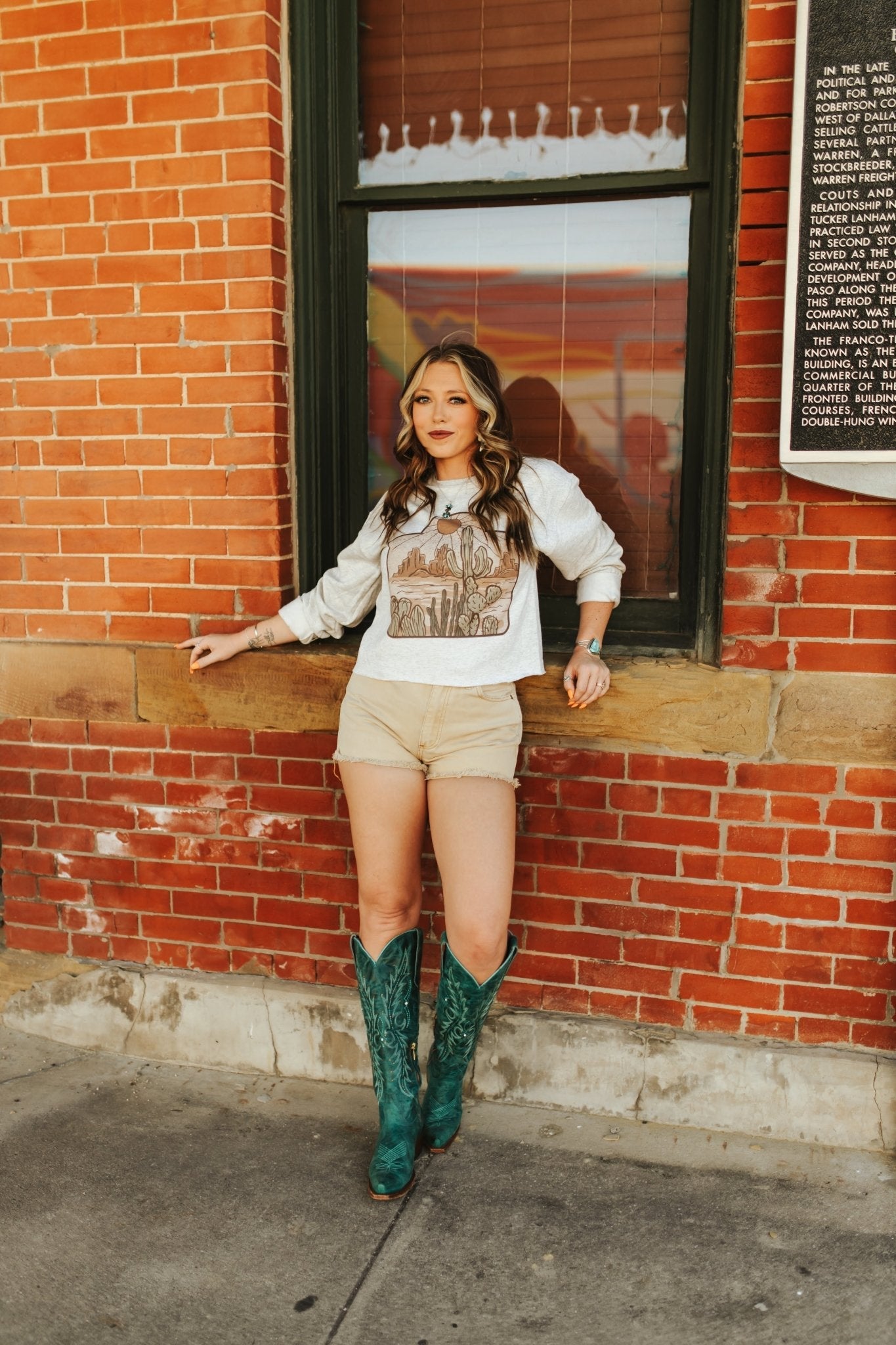 Escape to the desert with our cozy Desert Scene Graphic Sweater. Featuring a stunning desert landscape, it's perfect for chilly days when you need a mental getaway. Wrap yourself in comfort and let your imagination wander through the dunes.