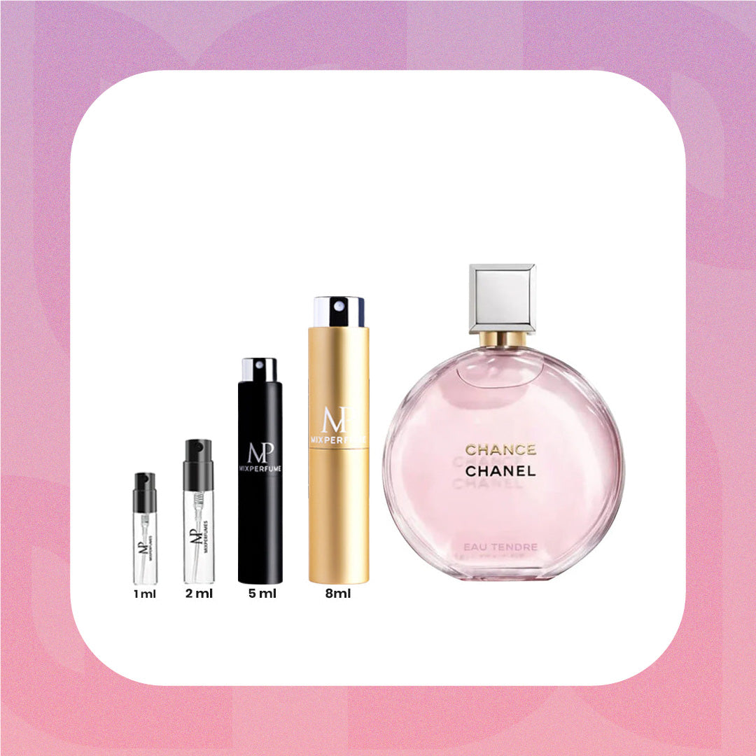 Discover the freedom of indulging in Chanel fragrance on the go with the Chance Eau Tendre Eau de Parfum. Experience the enchantment of this beloved scent in a sample size, perfectly designed for exploration and discovery. The Eau de Parfum sample size allows you to test and experience the captivating notes of Chanel Chance Eau Tendre without committing to a full-sized bottle.