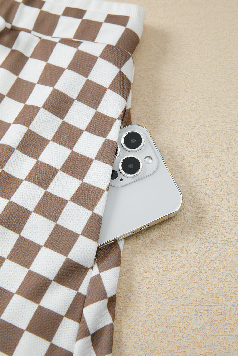Checker Long Sleeve Top and Drawstring Mini Skirt Set