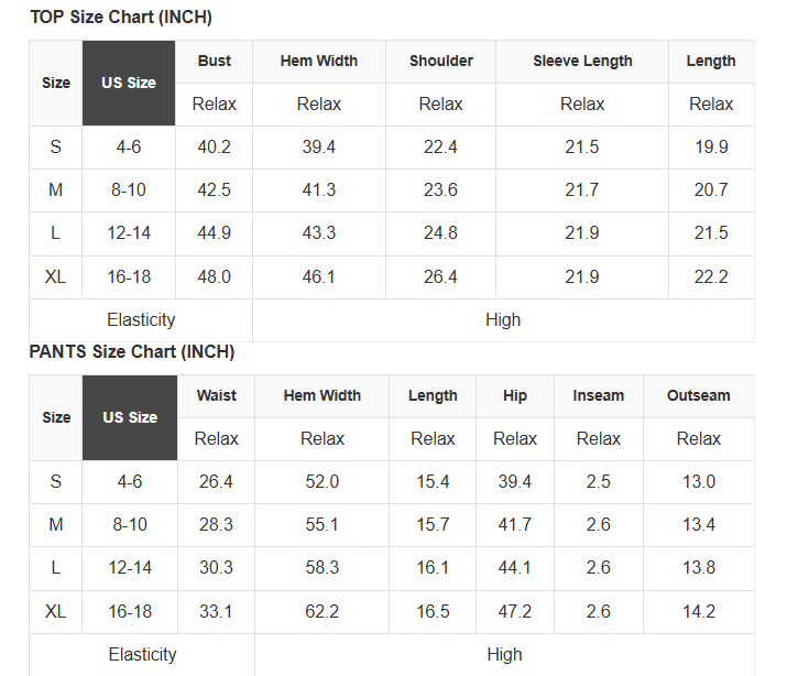 See size chart for approximate measurements.