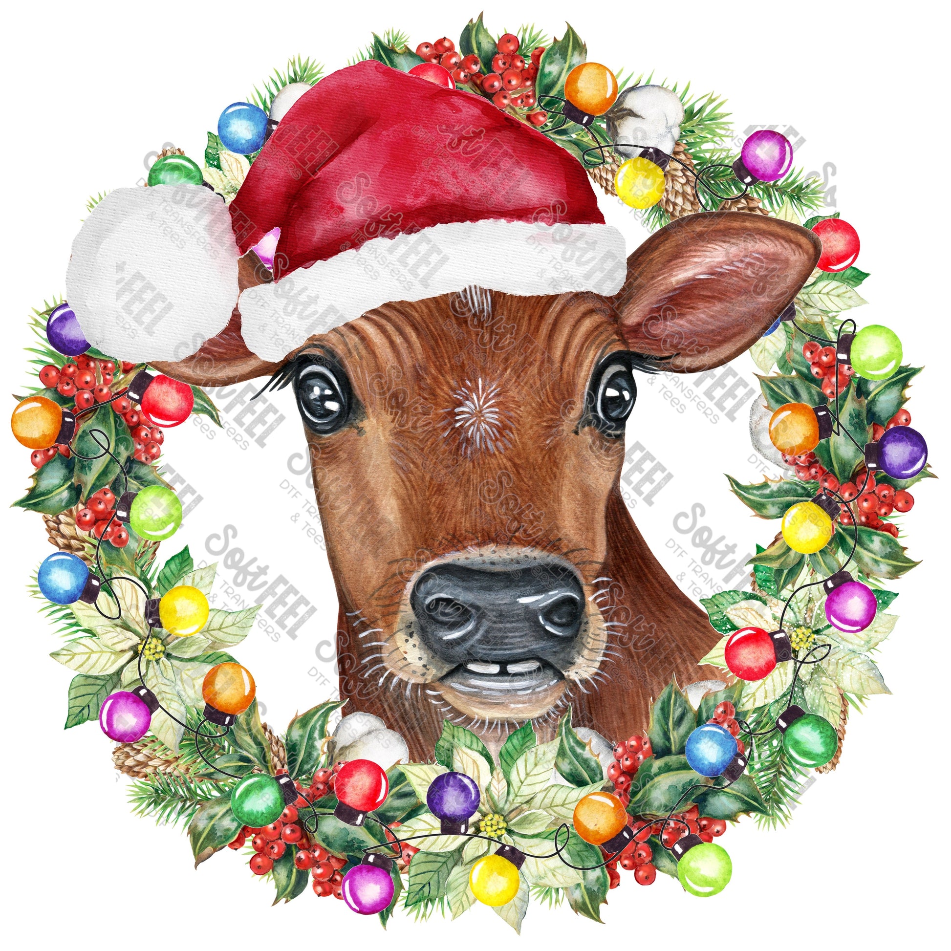 CHRISTMAS COW WREATH - Christmas / Country Western - Direct To Film Transfer / DTF - Heat Press Clothing Transfer