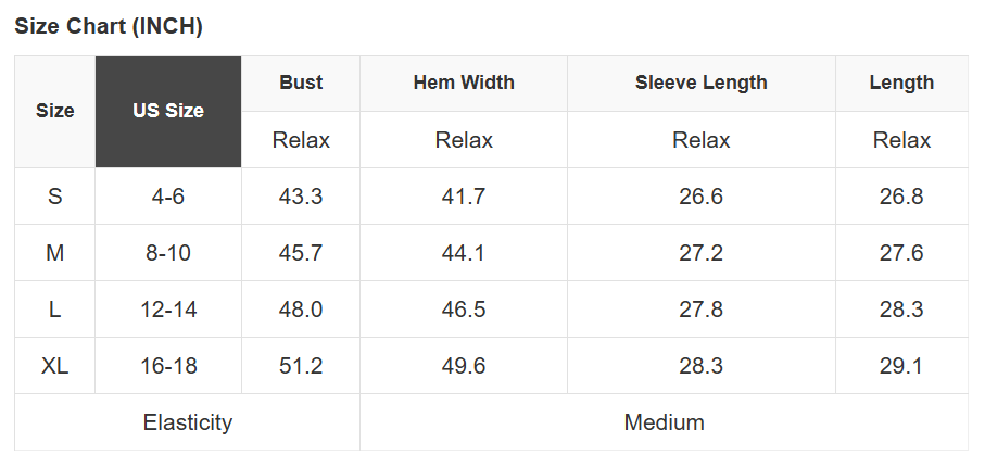 Size Info: See size chart for approximate measurements