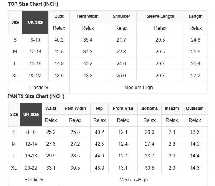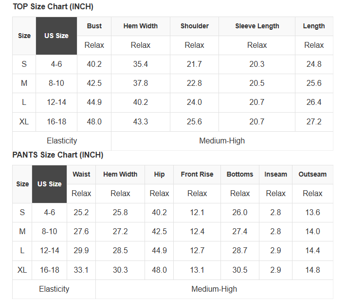 See size chart for approximate measurements.