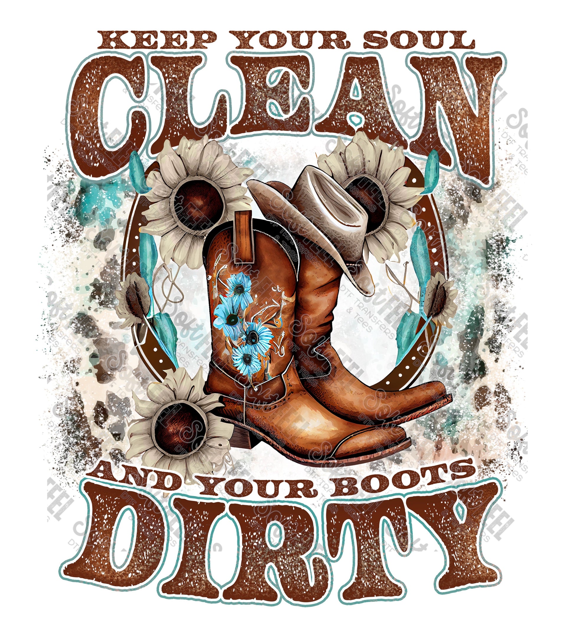 Clean Soul Dirty Boots - Country Western - Direct To Film Transfer / DTF - Heat Press Clothing Transfer