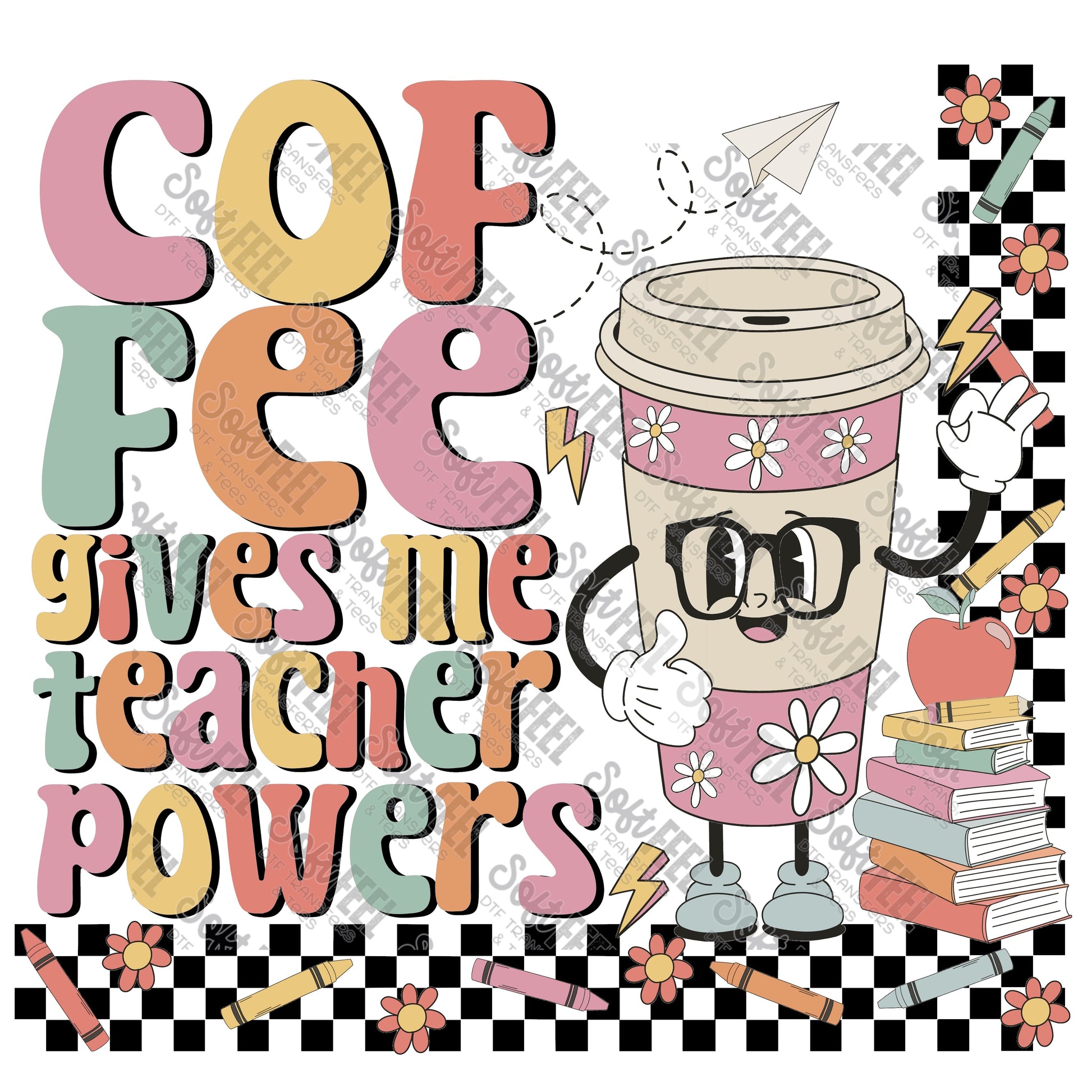 Coffee Gives Me Teacher Powers - School and Teacher / Women's - Direct To Film Transfer / DTF - Heat Press Clothing Transfer
