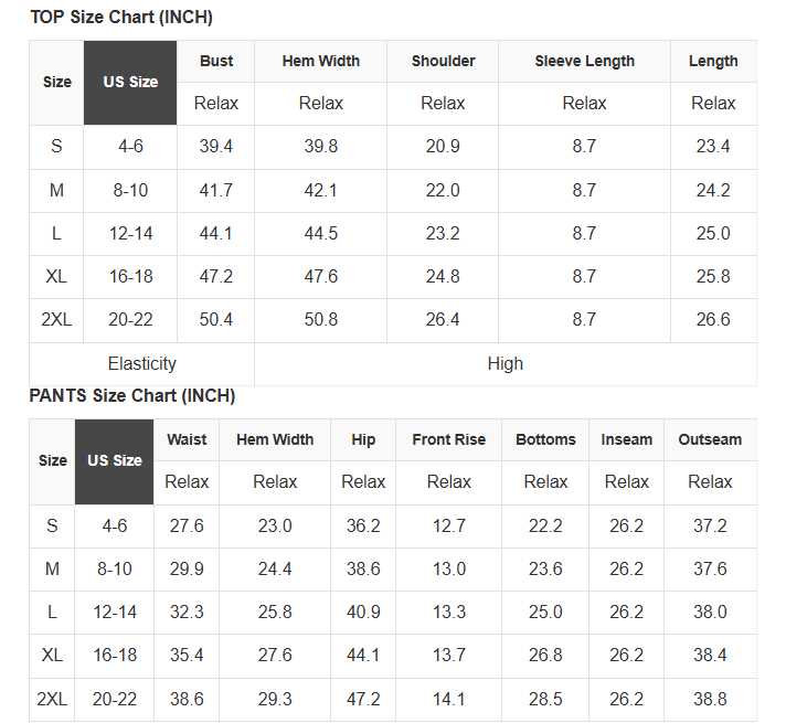 See size chart for approximate measurements.