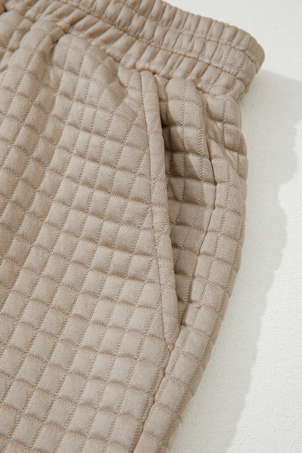 This two-piece set combines a textured long sleeve top with matching shorts, showcasing a distinctive patchwork design. Crafted from soft, breathable fabric, it offers comfort while maintaining a stylish edge. Ideal for casual wear, this set effortlessly suits both relaxing at home and casual outings. Polyester/Spandex