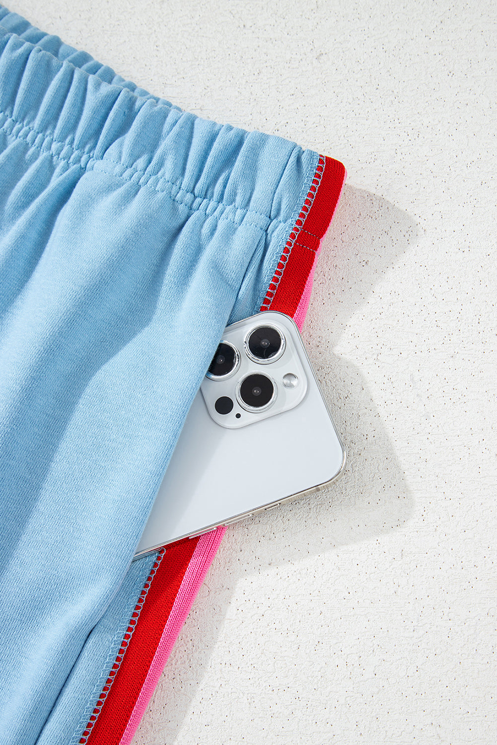 Elevate your warm-weather wardrobe with this chic two-piece set, featuring a collared short-sleeve top paired with tailored shorts for a polished yet playful look. The vibrant colorblock design injects fresh energy, while the subtle split neckline adds a touch of sophistication. Breathable short sleeves provide comfort throughout the day, and the coordinated shorts complete the ensemble with a sleek, cohesive finish. Perfect for casual outings, daytime events, or weekend brunches, this set effortlessly combines style and ease. Polyester/Cotton
