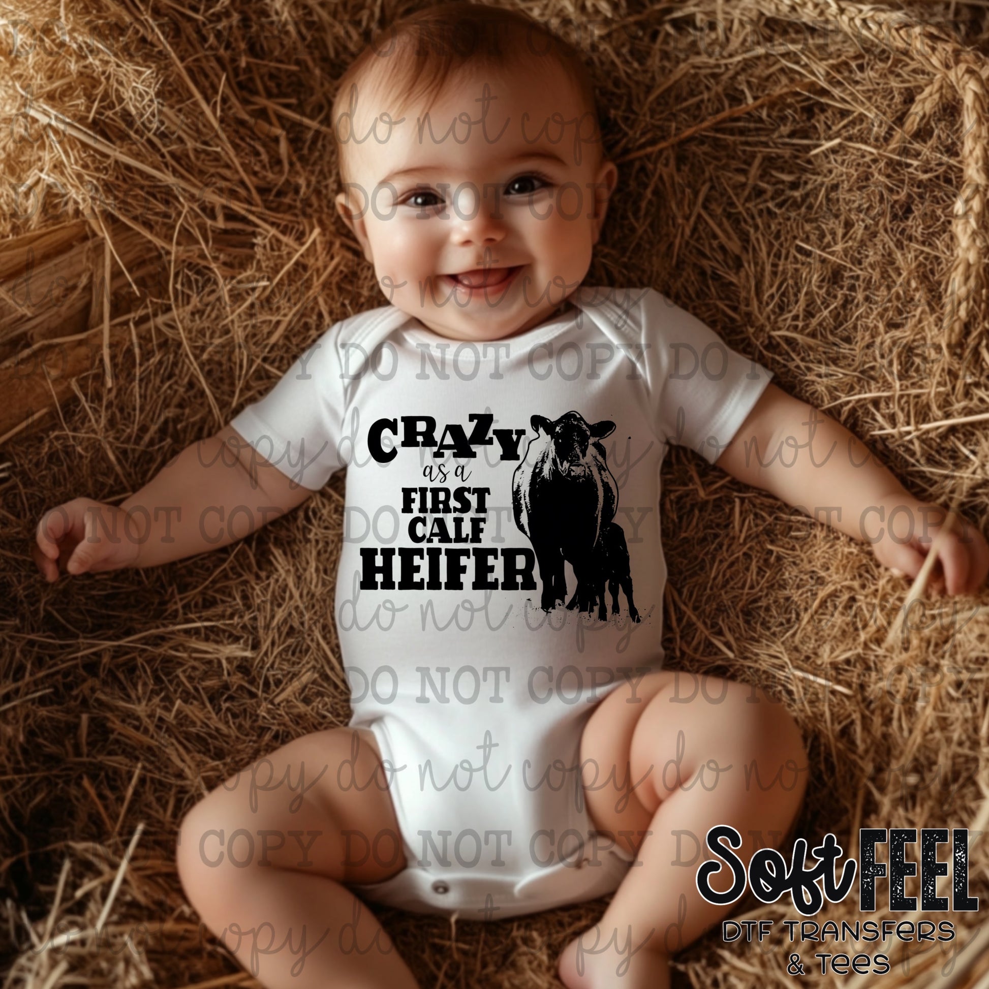 Crazy as a First Calf Heifer - Ranch Humor Youth Western - Direct To Film Transfer / DTF - Heat Press Clothing Transfer