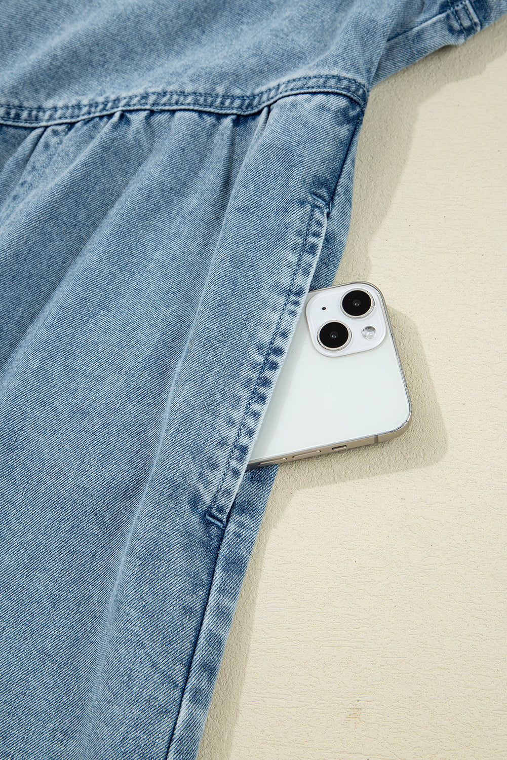 This lightweight dress features long sleeves with frilled smocked cuffs and heart button closures for a subtle touch of charm. The stitched waist detail enhances your silhouette, flowing into a flared skirt for effortless movement. A classic shirt collar and a single chest pocket complete the design, balancing style with practical elements. Ideal for adding a polished yet playful element to your wardrobe. Cotton/Polyester/Viscose