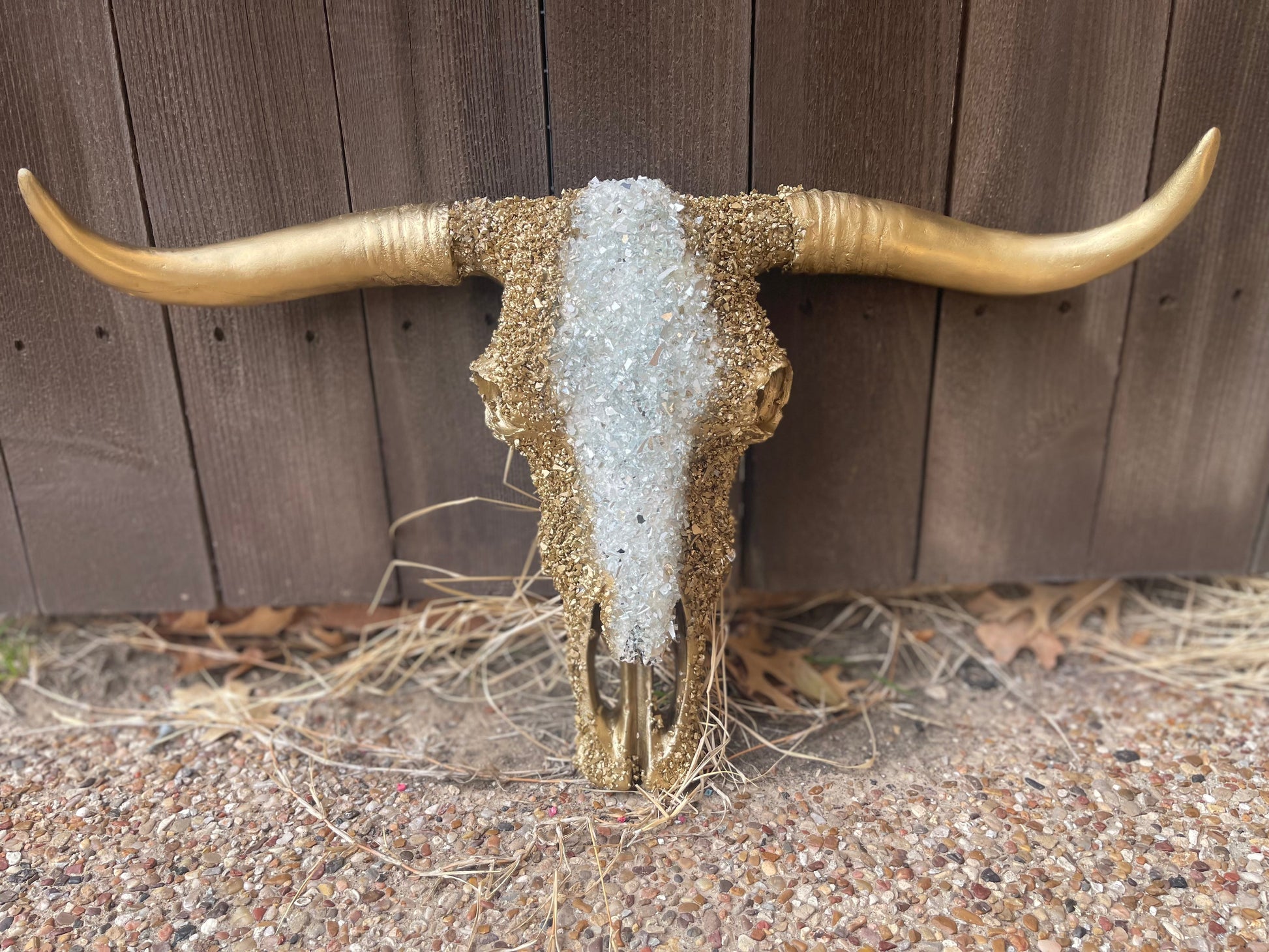 Experience the unique beauty of our Cowskull. Made from high-quality resin, this 20x12" cow skull is a stunning addition to any space. The claw tooth hanger installed on the back makes for easy hanging, perfect for any stylish home. Add a touch of elegance and sophistication with this one-of-a-kind piece. Handmade item, processing time 5-20 business days