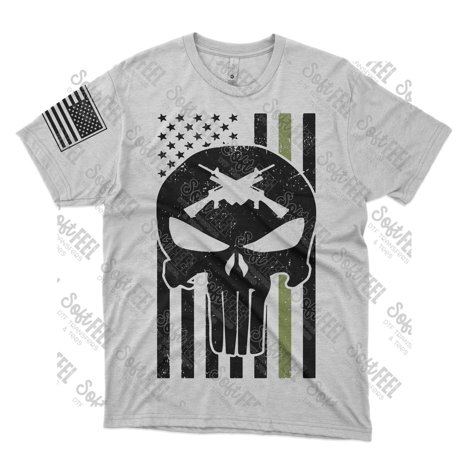 Flag Skull - Men's / Military / Patriotic - Direct To Film Transfer / DTF - Heat Press Clothing Transfer