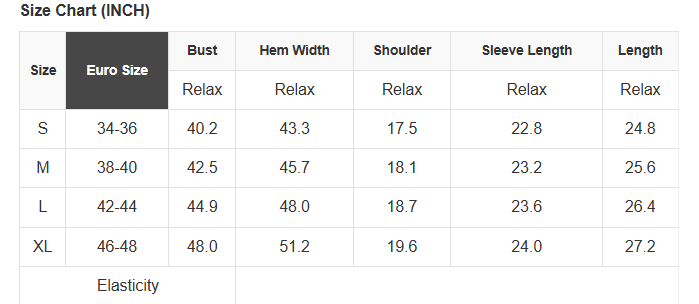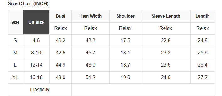 See size chart for approximate measurements.