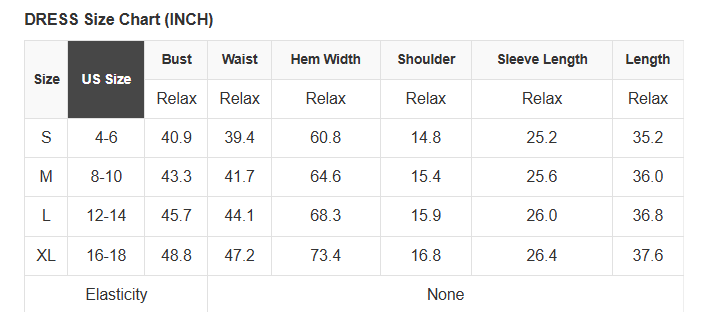 See size chart for approximate measurements.