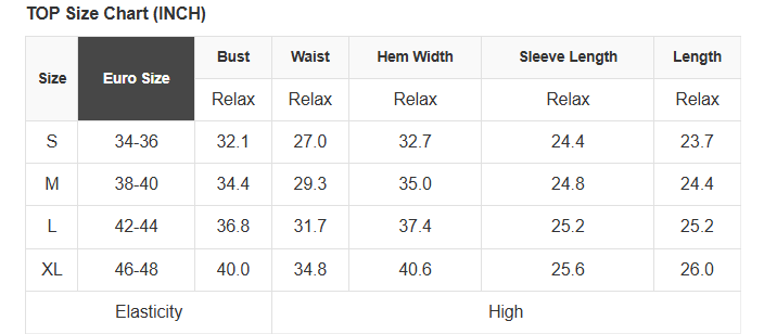 See size chart for approximate measurements.