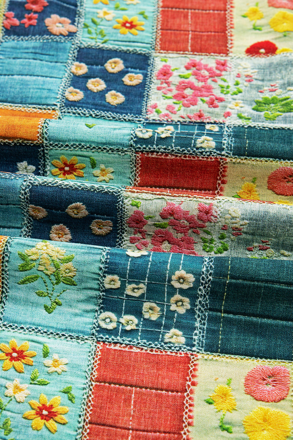 Floral Patchwork Long Sleeve Collared V-Neck Blouse