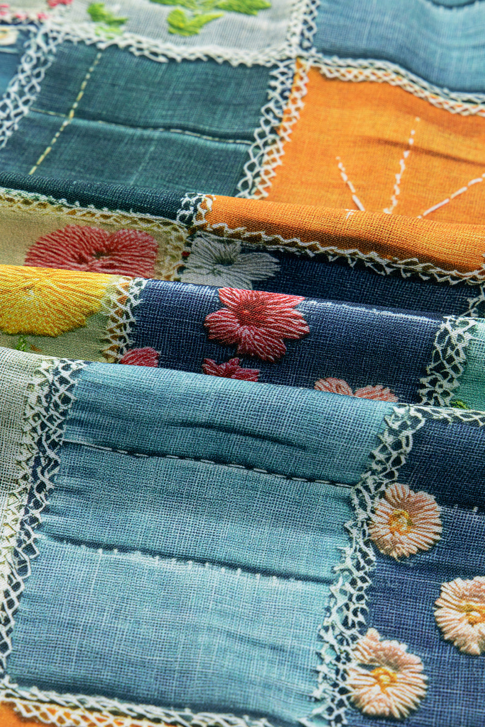 Floral Patchwork Long Sleeve Ruffle Hem Midi Dress