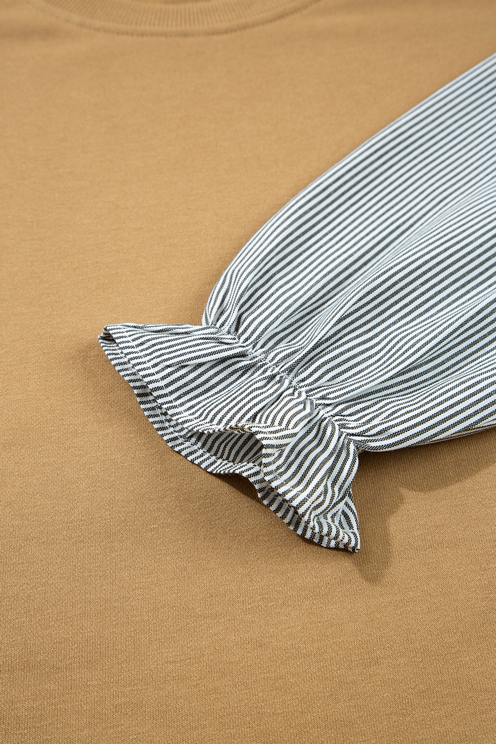 Floral Stripe Patchwork Ruffle Sleeve Crewneck Sweatshirt