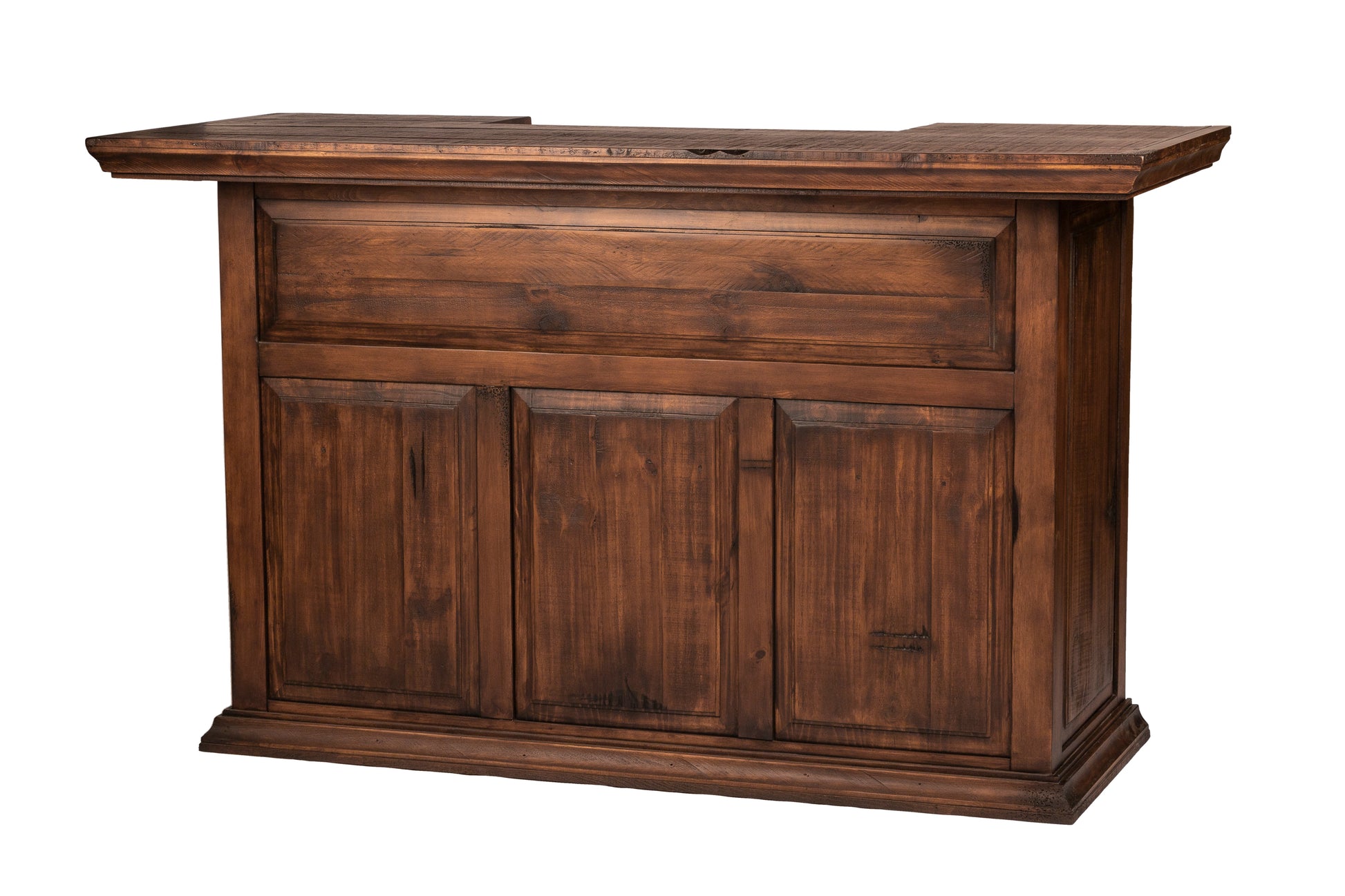 Whether placed in a dining room, living room, or entertainment area, the Floresville Bar combines practical storage solutions with timeless style. Elevate your home bar experience with the Floresville Bar's blend of functionality and rustic charm.