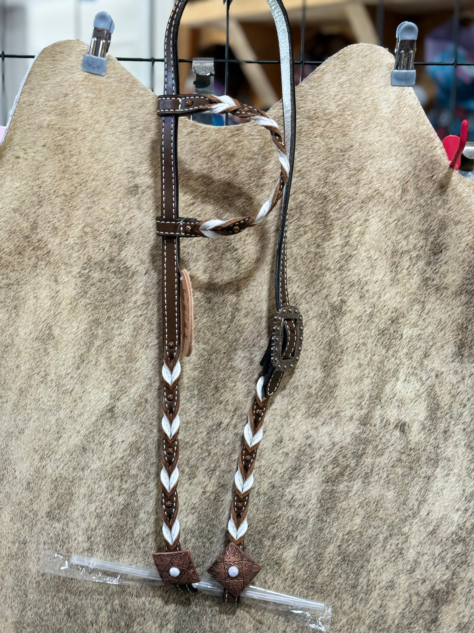 Experience bold style and unmatched durability with the Genuine Leather Twist Headstall. Crafted from premium leather, its twisted design makes a striking statement while ensuring long-lasting strength and comfort. Perfect for riders who dare to stand out, this headstall combines rugged functionality with fearless flair.