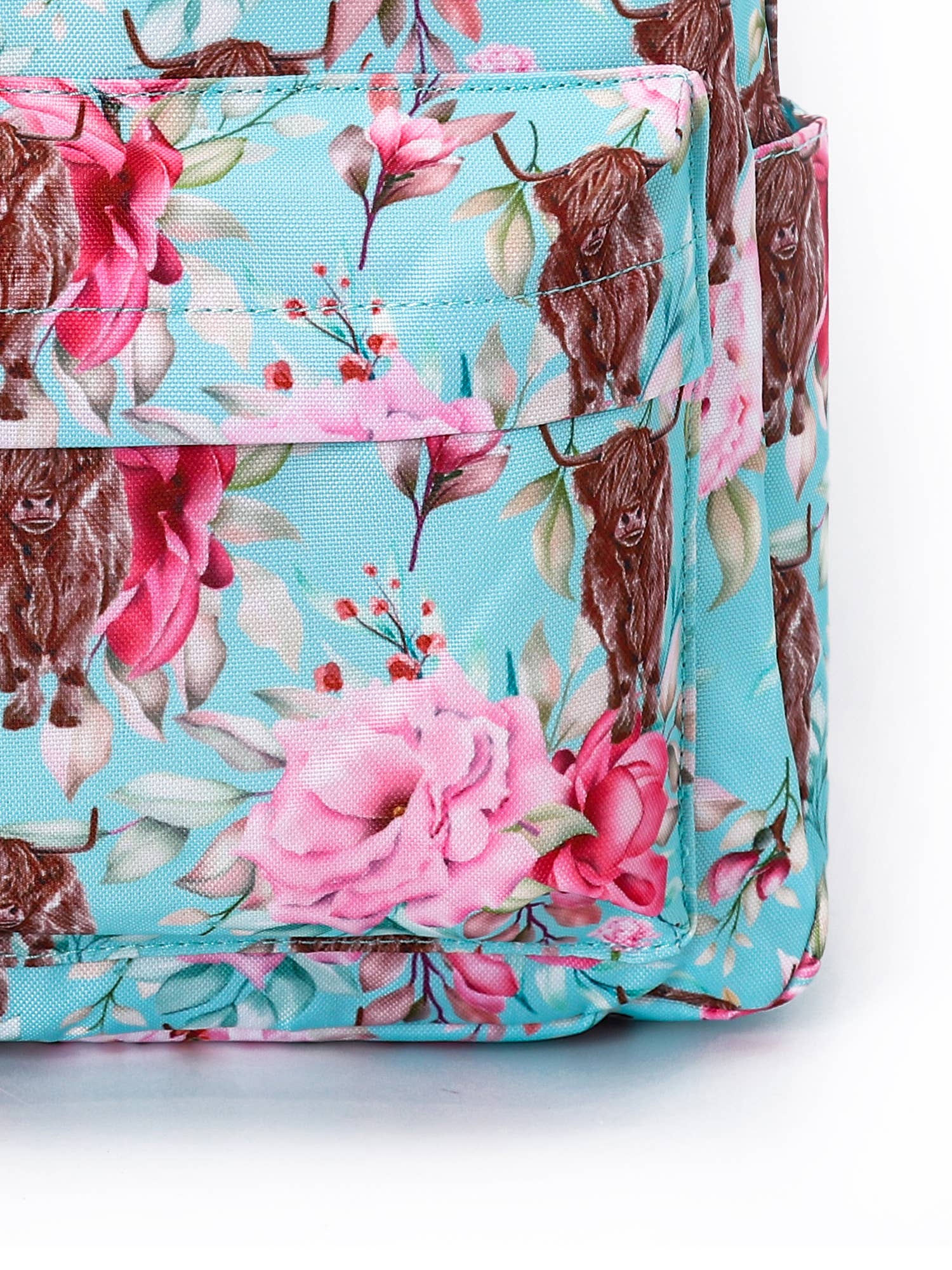 Size:13*5*17 inches ETA: 5-10 Days Highland Cow Flowers Little Girl Backpack This backpack is the perfect accessory for your little trend-setter. With bold floral illustrations and adjustable straps, they can always stay in style – even on the go!