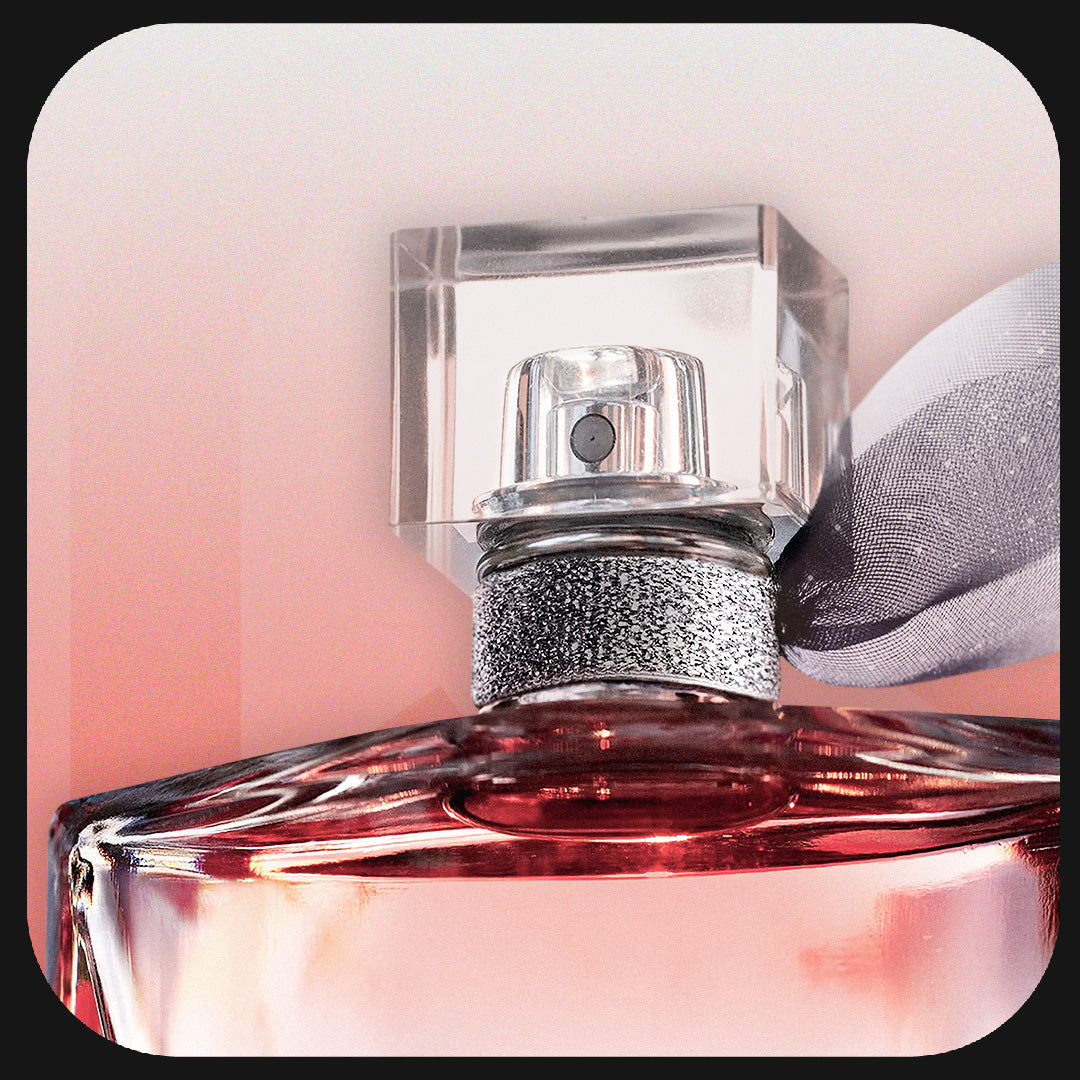 The bottle design of La Vie Est Belle exudes elegance and femininity. It features a sleek, curved silhouette with a delicate ribbon tied around the neck, symbolizing freedom and joy. The soft pink hue adds a touch of romance and charm, reflecting the essence of Lancôme's sophisticated aesthetic.