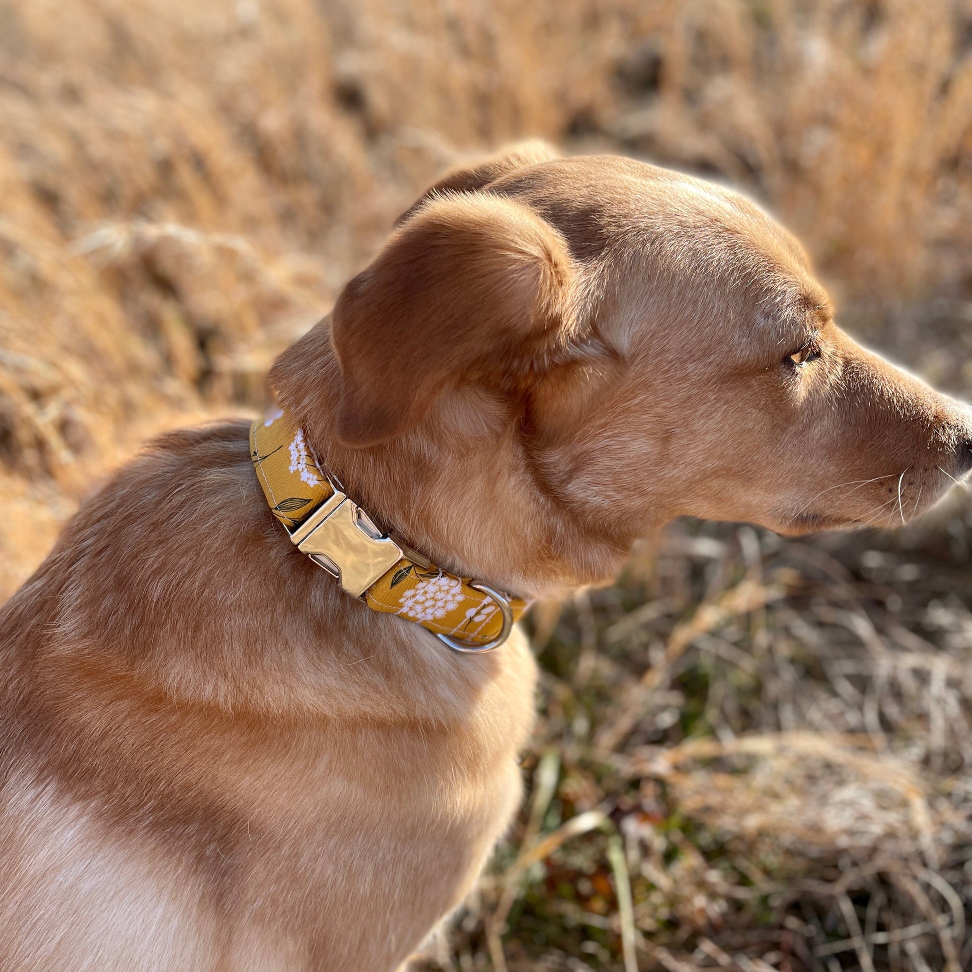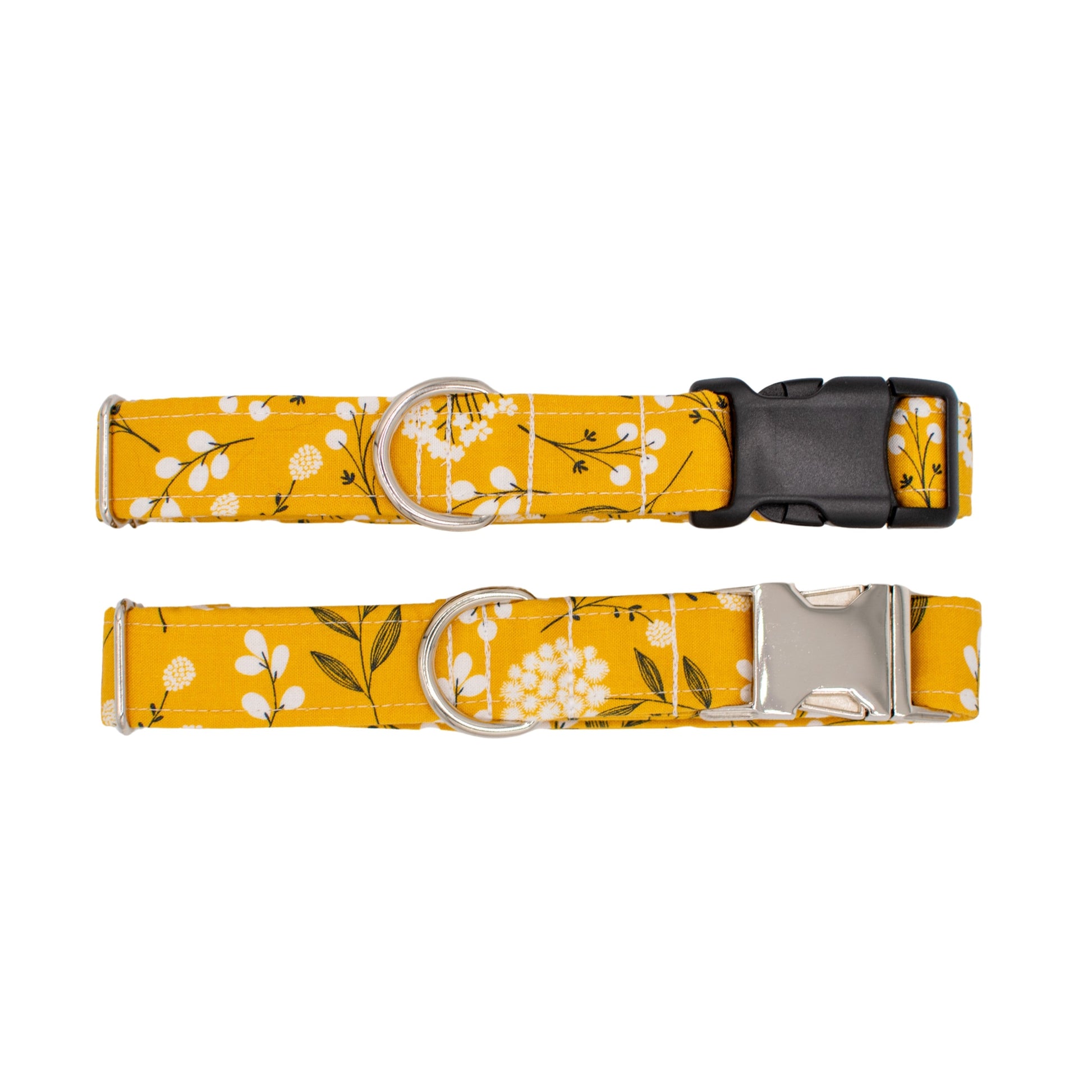 This Mustard Floral Dog Collar is designed to bring a sense of summer and fall to every pup's wardrobe! With its vibrant colors and quality, your pup will look their best and feel comfortable. Be the envy of the pup park with this bestseller!